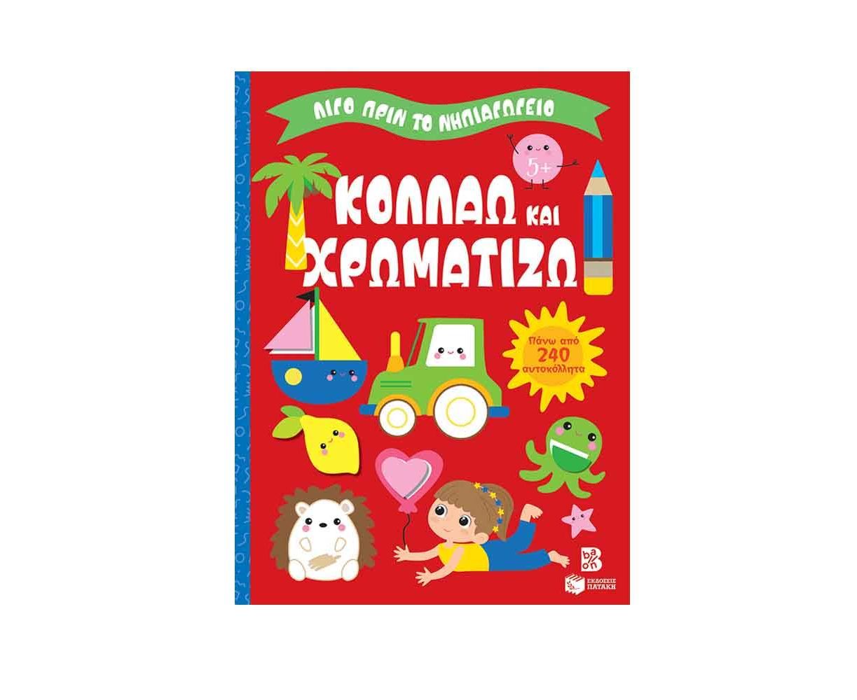 Το βιβλίο αυτό έχει σχεδιαστεί για παιδιά που ετοιμάζονται να πάνε στο νηπιαγωγείο. Περιέχει αυτοκόλλητα που ξεκολλάνε εύκολα και οι εικόνες γίνονται σταδιακά πιο πολύπλοκες. Τα περιγράμματα θα βοηθήσουν το παιδί να χρωματίσει σε οργανωμένο πλαίσιο ενώ στο κάτω μέρος της σελίδας υπάρχουν οπτικοποιημένες οδηγίες για να διαλέξει και να κολλήσει σωστά τα αυτοκόλλητα.