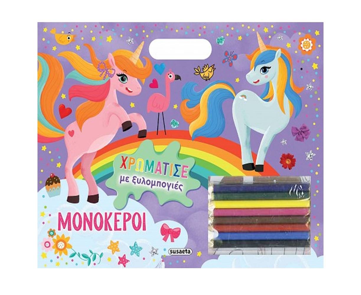 Mέσα σ’ αυτό το βιβλίο κρύβονται oι πιο όμορφοι μονόκεροι! Πάρε τις ξυλομπογιές σου και γέμισε τις σελίδες με χρώμα για να τους κάνεις να φαίνονται σαν αληθινοί!