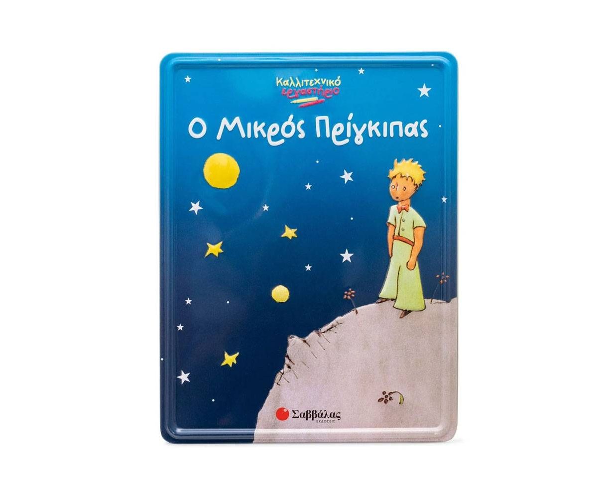 Ένα υπέροχο μεταλλικό κουτί που περιέχει: • Βιβλίο 32 σελίδων με εικόνες και αποσπάσματα από τον Μικρό Πρίγκιπα • Περισσότερα από 30 αυτοκόλλητα • Παζλ δύο όψεων με 36 κομμάτια, για να το συναρμολογήσεις και να το χρωματίσεις • 4 μαρκαδόρους
