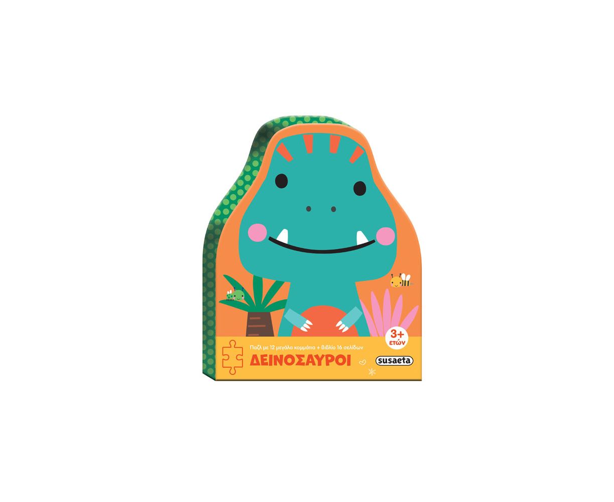 Δεινόσαυροι σε παζλ! Μέσα σε αυτό το κουτί θα βρεις 12 µεγάλα κοµµάτια παζλ και ένα βιβλίο µε µια χαριτωµένη ιστορία για µικρούς και µεγάλους δεινόσαυρους!