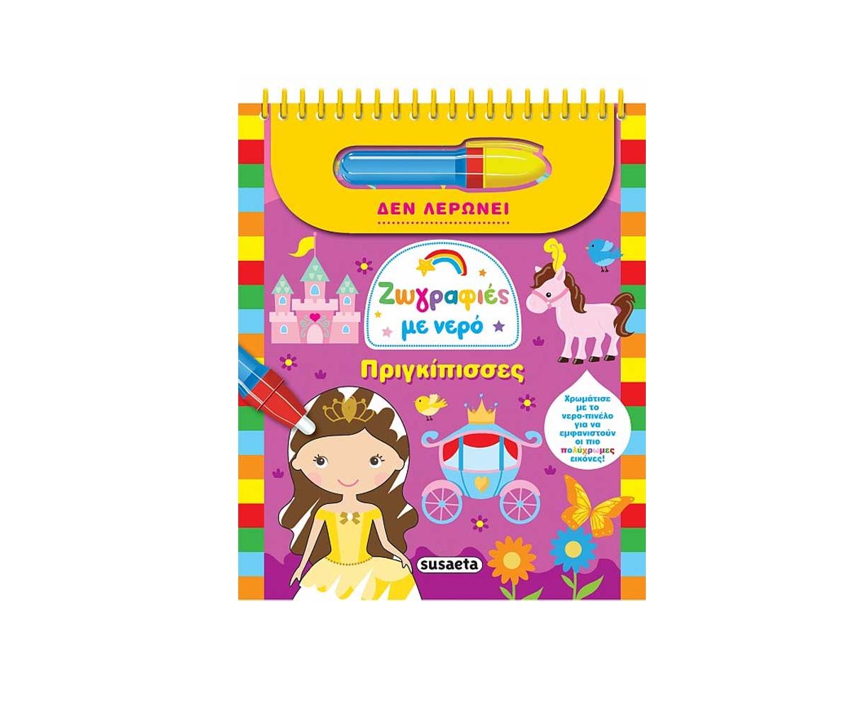 Ανακάλυψε τον μαγικό κόσμο των χρωμάτων με το νερο-πινέλο! Γέμισε το πινέλο σου με νερό και άρχισε να χρωματίζεις τις σελίδες του βιβλίου! Θα δεις τις πιο γλυκές πριγκίπισσες να ζωντανεύουν μπροστά σου! Μόλις στεγνώσουν οι σελίδες, το χρώμα θα εξαφανιστεί και τότε μπορείς να τις χρωματίσεις ξανά και ξανά, όσες φορές θέλεις!