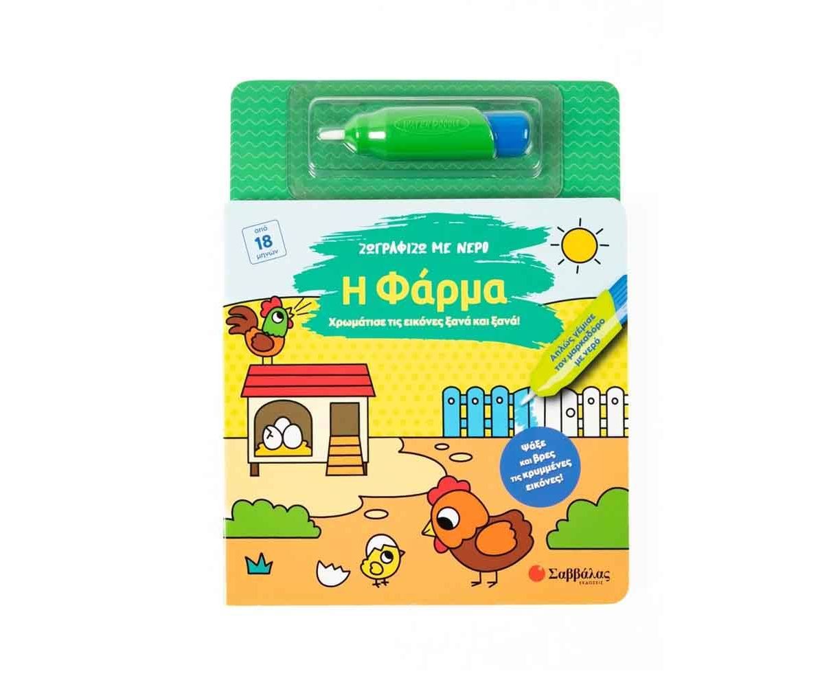 Γέμισε τον μαρκαδόρο με νερό. Πέρασέ τον επάνω στις λευκές σελίδες και δες τα χρώματα να εμφανίζονται μαγικά! Ψάξε και βρες μέσα στην εικόνα όλα τα ζωάκια και τα αντικείμενα της αριστερής σελίδας. Όταν στεγνώσει το νερό, μπορείς να χρωματίσεις και πάλι τη σελίδα, ξανά και ξανά