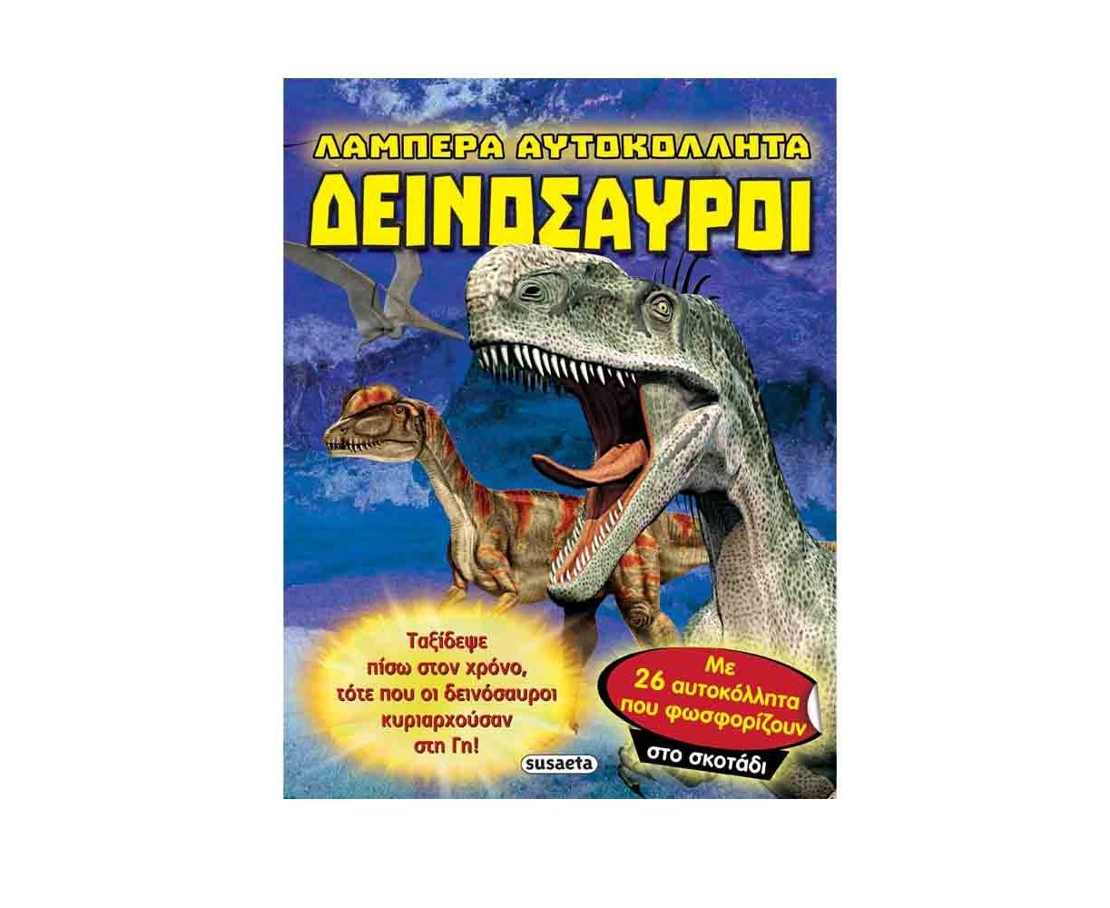 Δες τους πιο εντυπωσιακούς δεινόσαυρους να λάμπουν στο δωμάτιό σου! Μέχρι πριν από 68 εκατομμύρια χρόνια, η Γη κατοικούνταν από τα πιο περίεργα πλάσματα που έζησαν ποτέ. Ορισμένα ήταν άκακα, γιγάντια φυτοφάγα, ενώ άλλα ήταν θηριώδη σαρκοφάγα, έξυπνα και ευέλικτα. Όλα τους, πάντως, ήταν δεινόσαυροι. Στο βιβλίο αυτό θα βρεις ενδιαφέρουσες πληροφορίες για τα απίθανα αυτά προϊστορικά ζώα, καθώς και δεκάδες αυτοκόλλητα που λάμπουν στο σκοτάδι και φωτίζουν τις νύχτες σου!