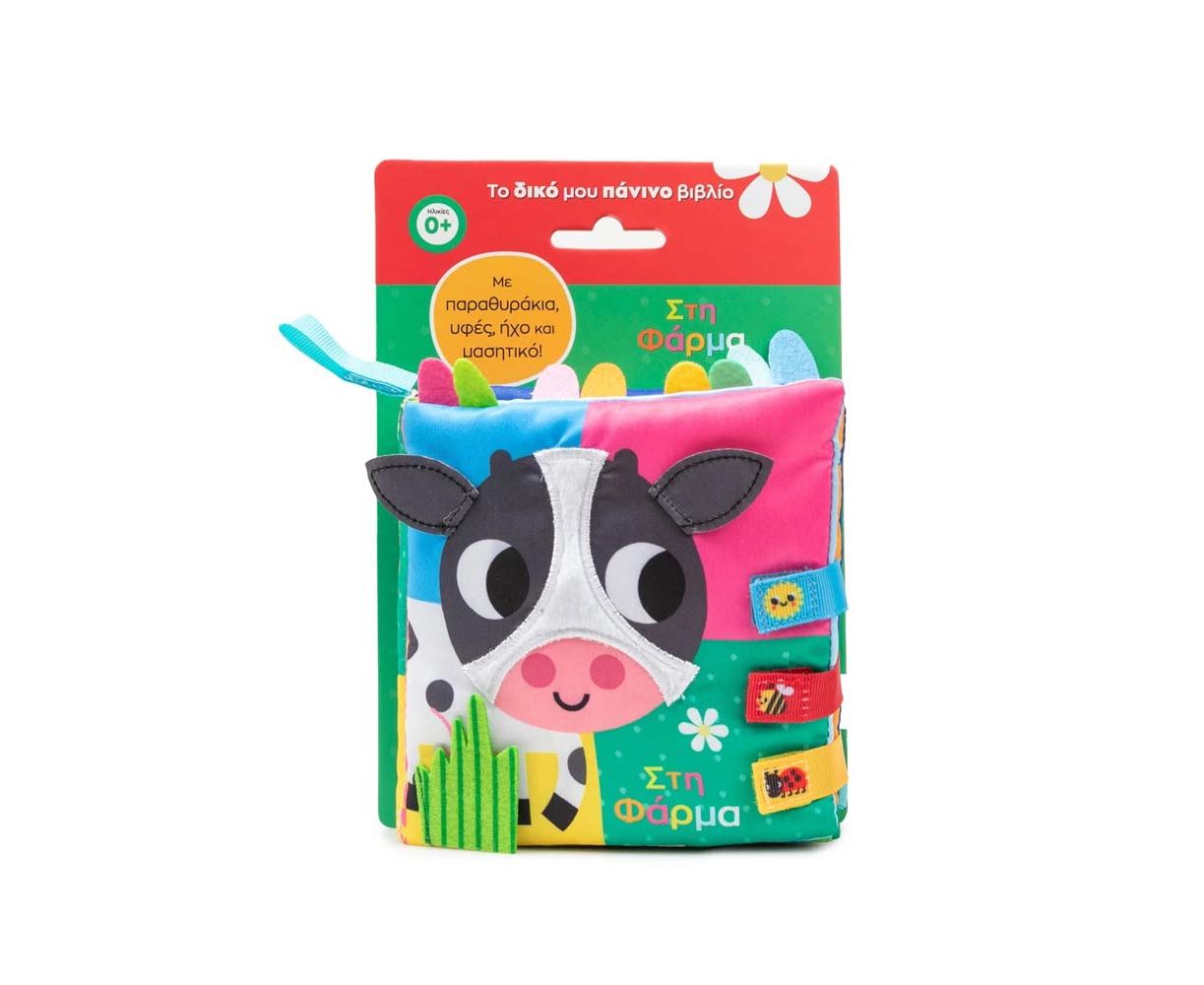 Ανακάλυψε τις διάφορες υφές, τους ήχους και τα παραθυράκια αυτού του πανέμορφου πάνινου βιβλίου και μάθε ποια ζωάκια ζουν στη φάρμα.