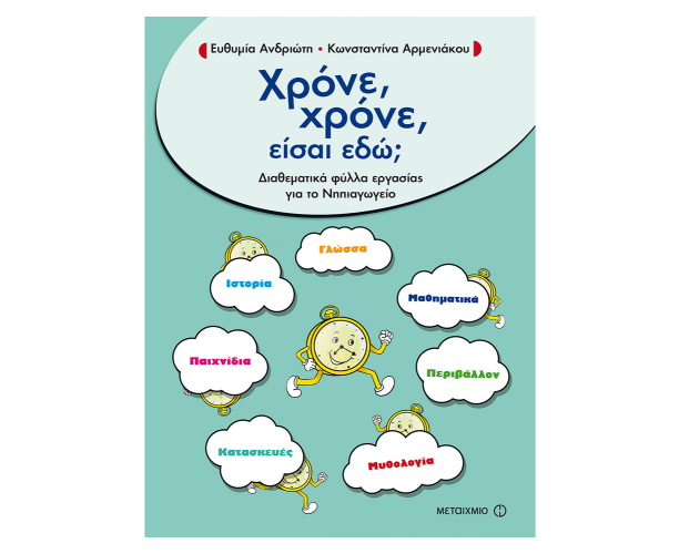 Βιβλίο με φύλλα δραστηριοτήτων για παιδιά του Νηπιαγωγείου. Μια ολοκληρωμένη πρόταση διδασκαλίας του χρόνου και ταυτόχρονα ένα βιβλίο με ποικίλες διαθεματικές δραστηριότητες που αξιοποιεί την έμφυτη περιέργεια των παιδιών, δίνει κίνητρο για μάθηση, σχετίζεται άμεσα με τα ενδιαφέροντα των παιδιών της προσχολικής και πρωτοσχολικής ηλικίας και με τους στόχους των αναλυτικών προγραμμάτων της Πρωτοβάθμιας Εκπαίδευσης.