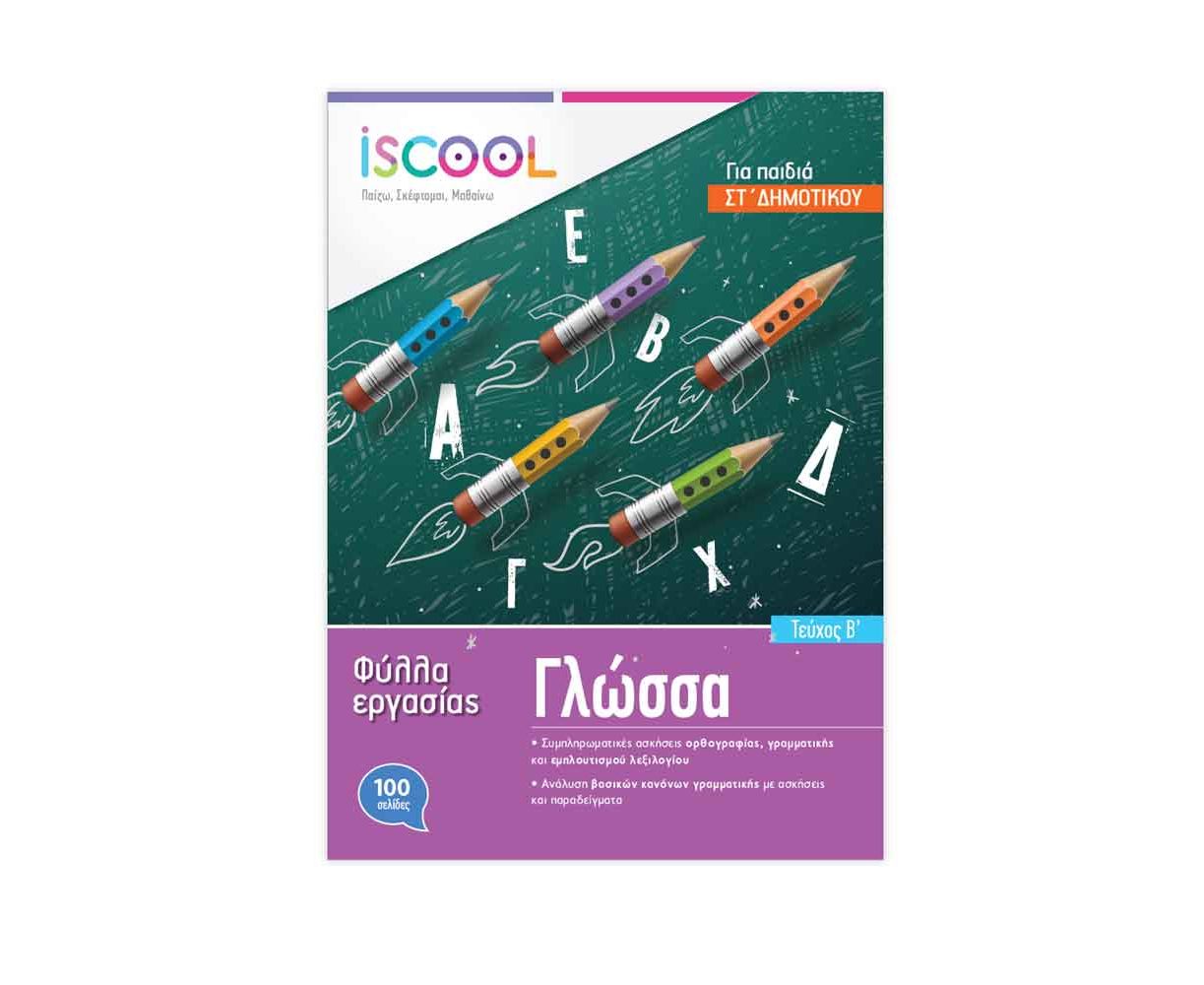 Το βιβλίο Φύλλων εργασίας Γλώσσας ακολουθεί αναλυτικά την ύλη του σχολείου, και όλη την αντίστοιχη ύλη της τάξης, αριθμητικά και παραθετικά επιθέτων, μετοχές, συντακτικό και έκθεση. Στην iScool αναζητούμε διαρκώς την ποιοτικότερη ενασχόληση του ίδιου μαθητή. Δημιουργούμε ελκυστικό, απλό και κατανοητό περιβάλλον εκπαίδευσης, ώστε οι μικροί μας μαθητές να αγαπήσουν το διάβασμα, να εμπεδώσουν την ύλη με ευχάριστο τρόπο, να αναπτύξουν την κριτική τους σκέψη και να τεθούν οι σωστές βάσεις για τις επόμενες τάξεις.