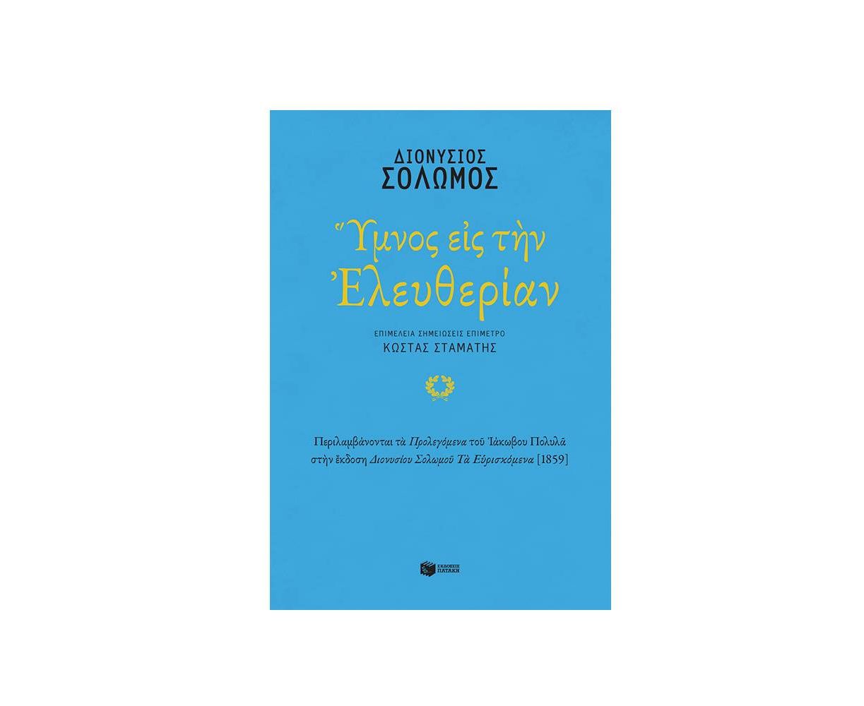 "O Ύμνος εις την Ελευθερίαν του Διονυσίου Σολωμού μόνο τυχαίο γεγονός δεν υπήρξε στην αναγεννημένη ποίησή μας και στην Ιστορία της ελεύθερης νεοελληνικής ζωής. Γράφτηκε τις ώρες που εξελισσόταν η Επανάσταση του 1821, όταν οι καπνοί από τις μάχες είχαν σμίξει με τα πρώτα φανερώματα της νέας ποιητικής δημιουργίας, για ν’ αναστήσουν και πάλι ελεύθερη τη θεϊκιά κι όλη αίματα Πατρίδα. Ο ποιητής είχε ήδη υψωθεί ολόθυμα στην έννοια και στη μορφή της Ελευθερίας και συνέθεσε τον Μάιο του 1823 το διαρκέστερο συνειδησιακό χρέος του ελληνικού λαού να ζήσει πλέον ελεύθερος. Από τότε ως τις μέρες μας, αυτό το άρρηκτο στον χρόνο έργο επικυρώνει διαρκώς ως νεότερο Δημόσιο Σήμα την ελεύθερη εθνική μας υπόσταση. Μέχρι το τέλος του 20ού αι., ο Ύμνος ήταν το πιο πολυμεταφρασμένο νεοελληνικό ποίημα. Το άλλο μέρος που συναπαρτίζει αυτήν την έκδοση σ’ ένα ενιαίο οργανικό σύνολο είναι τα Προλεγόμενα του Ιάκωβου Πολυλά, του διανοητή και λογοτέχνη που «σαν μέλισσα τρύγησε την ποιητική ουσία του Σολωμού», σύμφωνα με τον Λορέντζο Μαβίλη. Αποτελεί την ουσιωδέστερη μελέτη και μαρτυρία από τον άνθρωπο που υπήρξε επιστήθιος φίλος του Σολωμού και αυτοπρόσωπος μάρτυρας της ζωής και του έργου του". Κ.Σ.