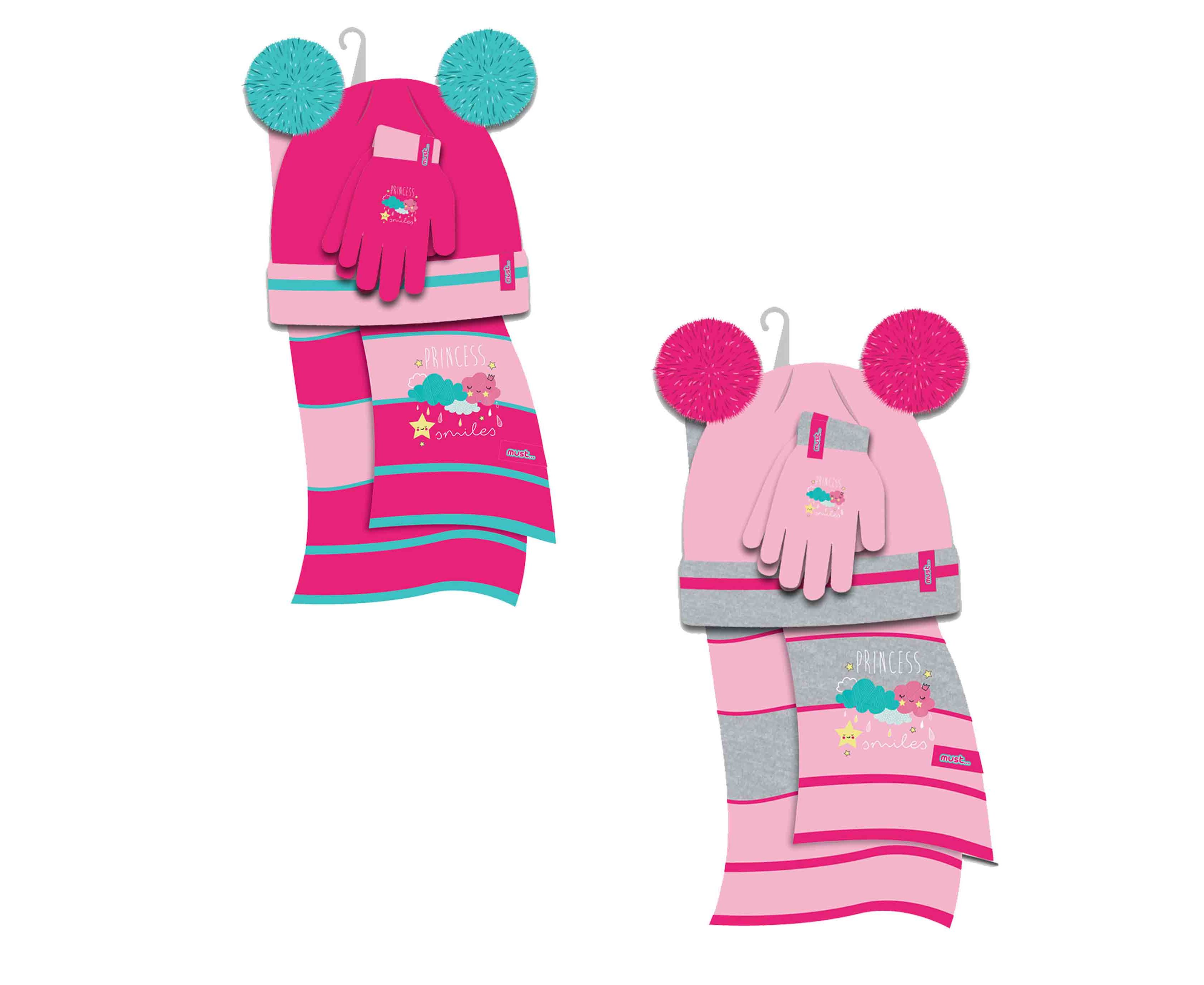 Παιδικό Σετ Σκουφάκι, Κασκόλ & Γάντια Must Cloud Princess με εκτυπωμένο σχέδιο Συννεφάκια σε 2 υπέροχα χρώματα που θα ενθουσιάσει κάθε κορίτσι!
