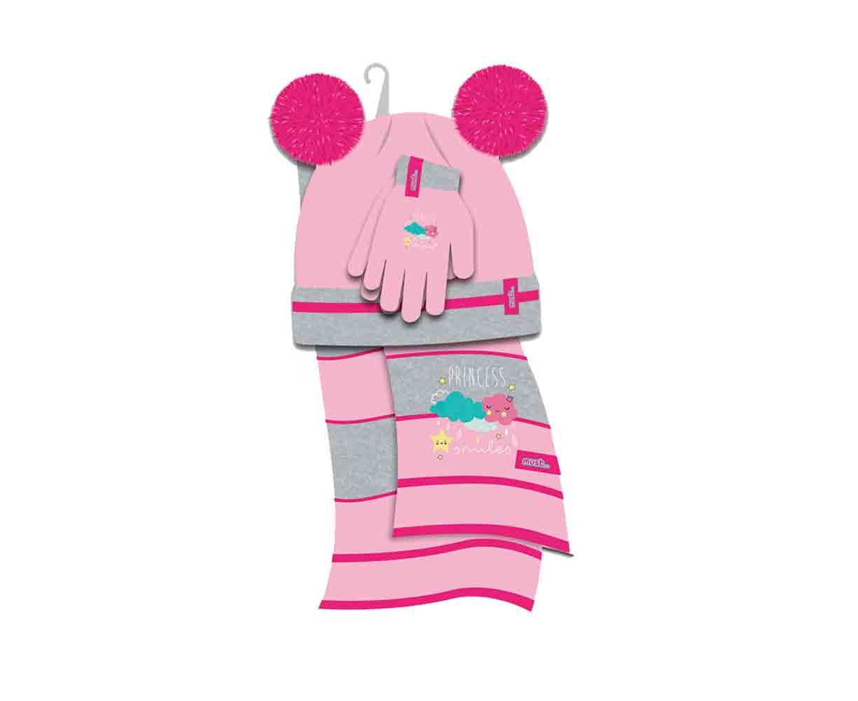 Παιδικό Σετ Σκουφάκι, Κασκόλ & Γάντια Must Cloud Princess με εκτυπωμένο σχέδιο Συννεφάκια σε 2 υπέροχα χρώματα που θα ενθουσιάσει κάθε κορίτσι!