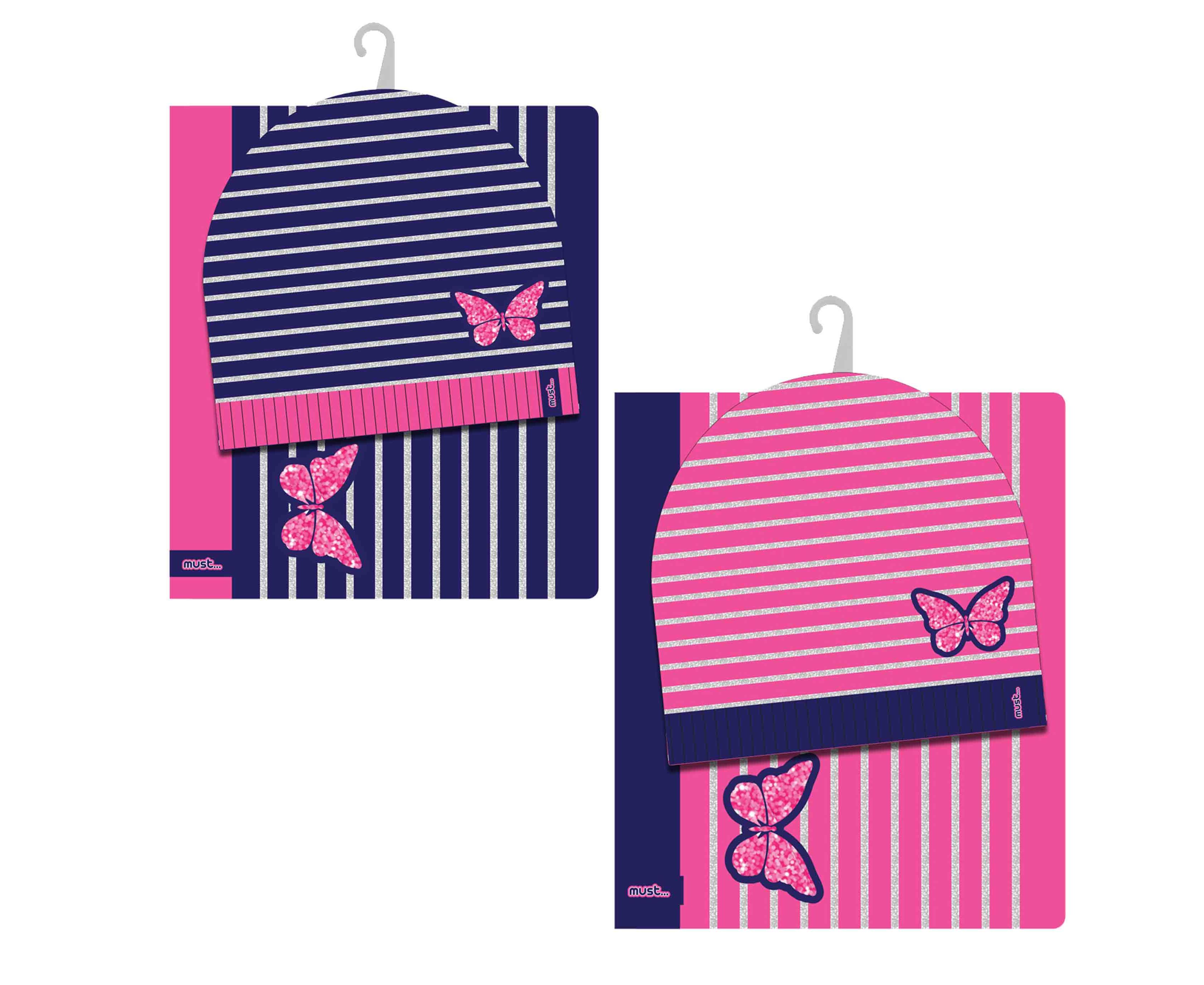 Παιδικό Σετ Σκουφάκι & Κασκόλ Λαιμού Must Butterfly σε 2 υπέροχα σχέδια που θα ενθουσιάσει κάθε κορίτσι με τις 3D φούξια κεντημένες glitter πεταλούδες!
