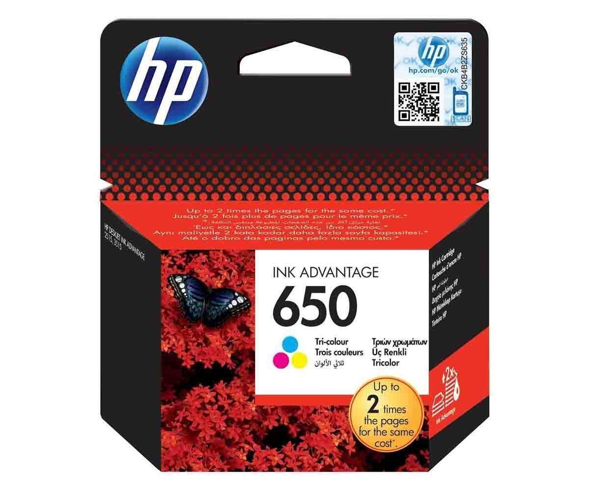 Μονή συσκευασία έγχρωμου μελανιού τεχνολογίας Inkjet της Hewlett Packard. Τα δοχεία έγχρωμης μελάνης HP 650 εκτυπώνουν ζωηρόχρωμα έγγραφα, αναφορές και επιστολές εξαιρετικής ποιότητας, ενώ παράλληλα μειώνουν το κόστος εκτύπωσης.