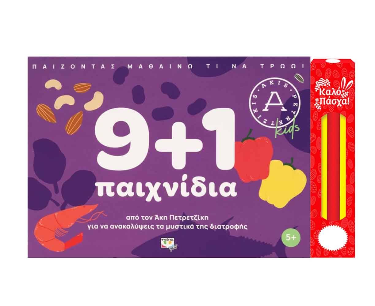Παίζοντας μαθαίνω τι να τρώω! 9+1 παιχνίδια, από τον Άκη Πετρετζίκη, που μπορείς να παίξεις με τα φιλαράκια σου αν συνδυάσεις τις κάρτες που θα βρεις μέσα σε αυτό το κουτί.