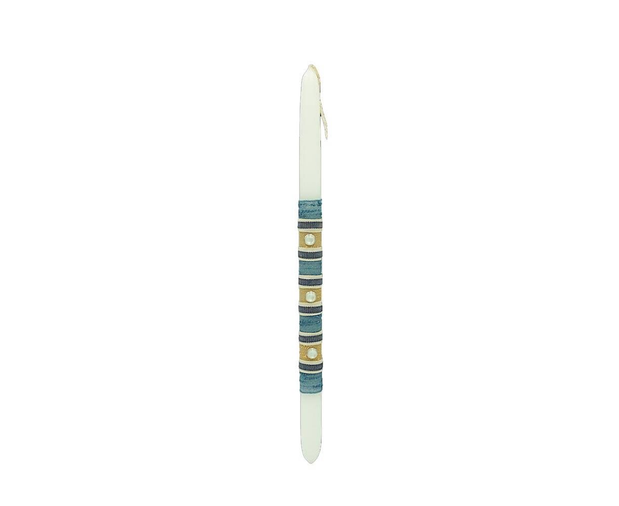 Λαμπάδα Χειροποίητη Ριγέ Μπλε Κίτρινο 24535