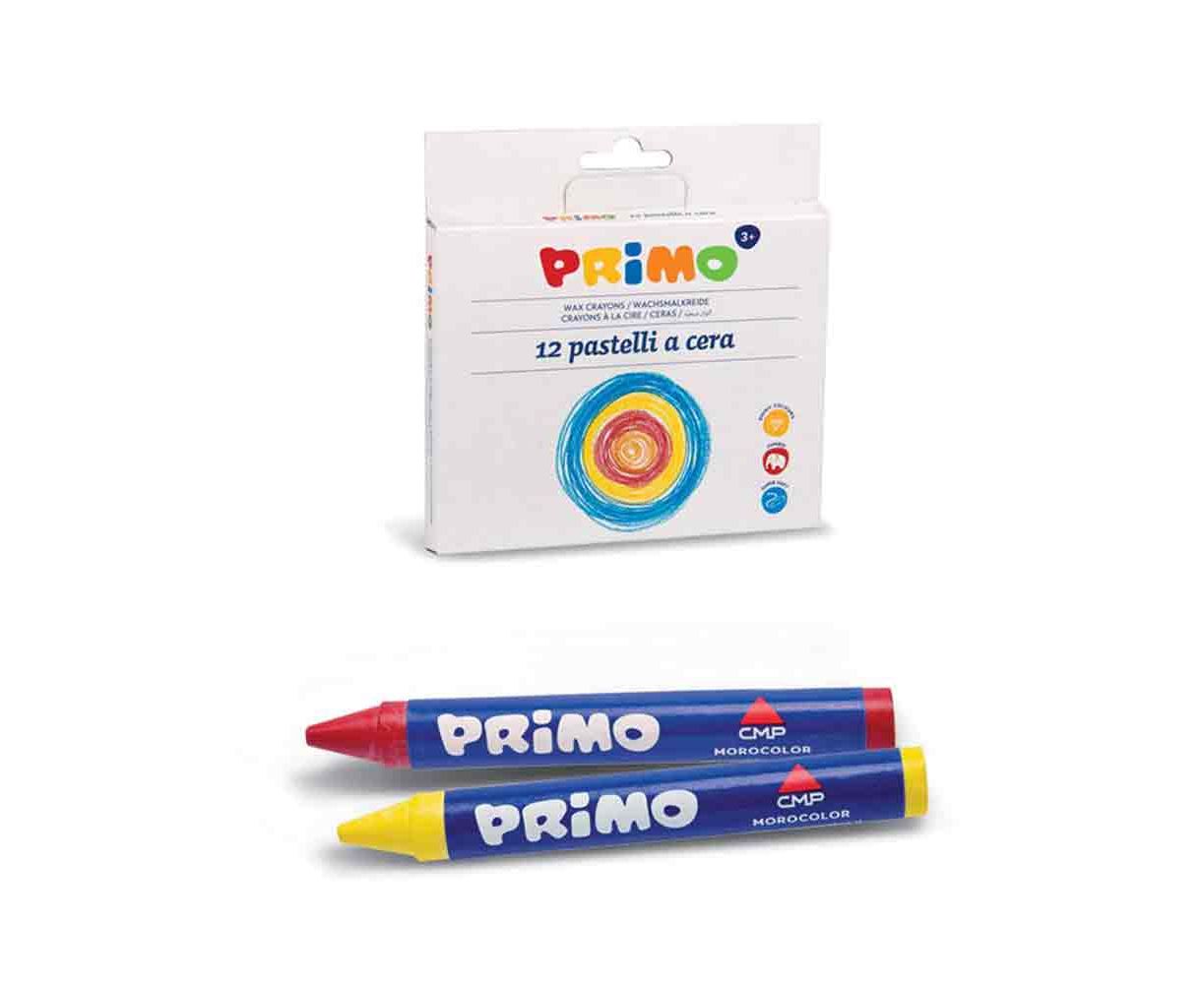 Κηρομπογιές Primo με ζωηρά χρώματα, πολύ άνετο κράτημα για δημιουργικές δραστηριότητες σε 12 διαφορετικά χρώματα.