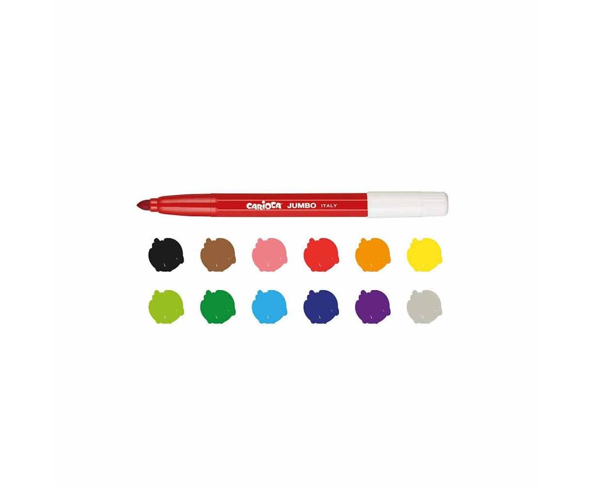 Οι Carioca Jumbo είναι εξαιρετικής ποιότητας μαρκαδόροι ζωγραφικής με συνθετική μύτη γραφής διαμέτρου 5mm. Ειδικά σχεδιασμένοι για σωστό και εύκολο κράτημα,είναι ιδανικοί για χρωματισμό μεγάλων επιφανειών.