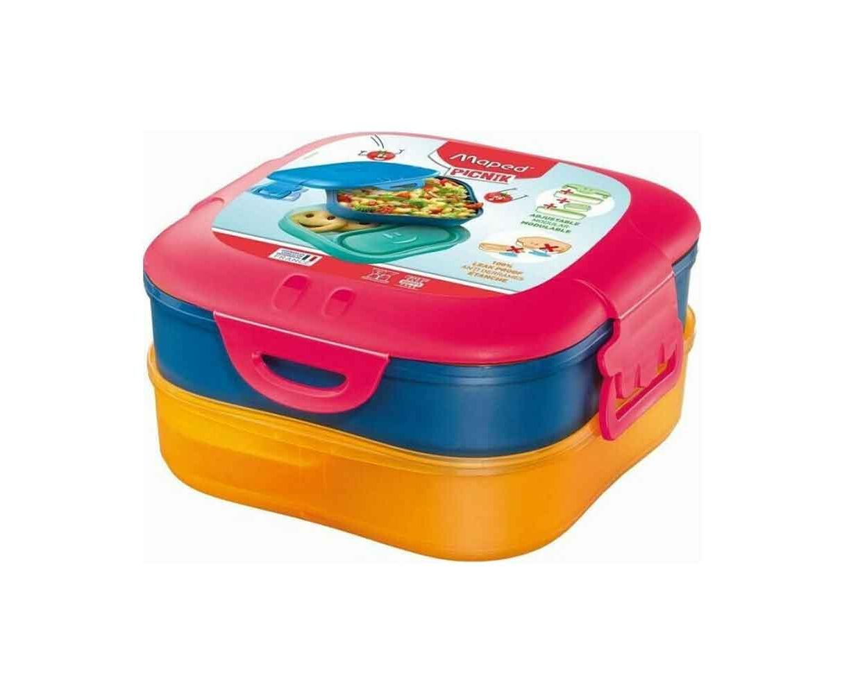 Η σειρά Picnik Concept φαγητοδοχείων της Maped φέρνει έναν άλλο αέρα στο κολατσιό. Ο σχεδιασμός του έχει μελετηθεί πλήρως και προσαρμοστεί για τα παιδιά. Ανοίγει και κλείνει αεροστεγώς πολύ εύκολα με κλιπ στα πλαϊνά, ώστε να αποφεύγονται τυχόν διαρροές! Ανακαλύψτε το νέο φαγητοδοχείο Maped Picnik 3 σε 1. Προσαρμόζεται σε όλες τις δραστηριότητές τους (σχολείο, σχολικά ταξίδια, περίπατοι, αθλητισμός κ.λπ.) χάρη στα 3 χωριστά διαμερίσματα που σας επιτρέπουν να έχετε ένα πλήρες γεύμα για το παιδί σας. Το φαγητοδοχείο μπορεί να χρησιμοποιηθεί με όλους τους δυνατούς συνδυασμούς: μονό, διπλό, με ή χωρίς κουτί σνακ, ανάλογα με τις ανάγκες και τις επιθυμίες του παιδιού σας.
