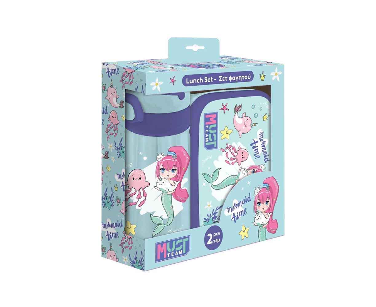 Το Σετ Φαγητού Must Team Mermaid Time περιέχει 1 φαγητοδοχείο και 1 PP παγούρι για να απολαμβάνουν τα παιδιά κάθε στιγμή το σπιτικό τους γεύμα στο σχολείο, στην παιδική χαρά και στη βόλτα! Το φαγητοδοχείο ξεχωρίζει για το αεροστεγές κλείσιμο, ενώ το παγούρι ανοίγει-κλείνει εύκολα και εξασφαλίζει την προστασία από διαρροές.