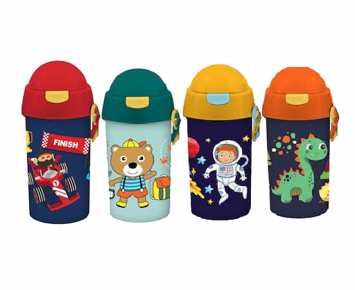Παγούρι Must 500ml Πλαστικό για Αγόρι με Καλαμάκι σε 4 σχέδια (Camp, Racing, Space Adventure, Dino), ιδανικό αξεσουάρ για τον παιδικό σταθμό, το νηπιαγωγείο και την παιδική χαρά.
