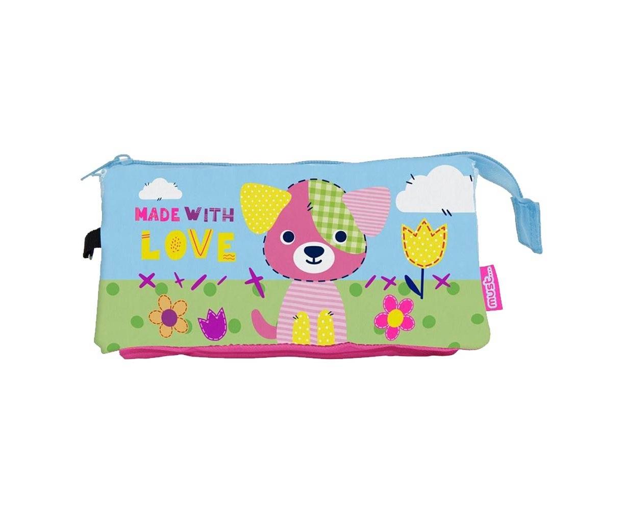 Σχολική Κασετίνα Βαρελάκι Must Made With Love με 3 θήκες, ιδανική για κάθε σακίδιο πλάτης και τρόλλεϋ προσφέρει τη κατάλληλη οργάνωση, την ασφαλή φύλαξη και την εύκολη μεταφορά όλων των πολύτιμών σχολικών. Ξεχωρίζει για το υπέροχο σχέδιο σκυλάκι με λούτρινα αυτάκια!