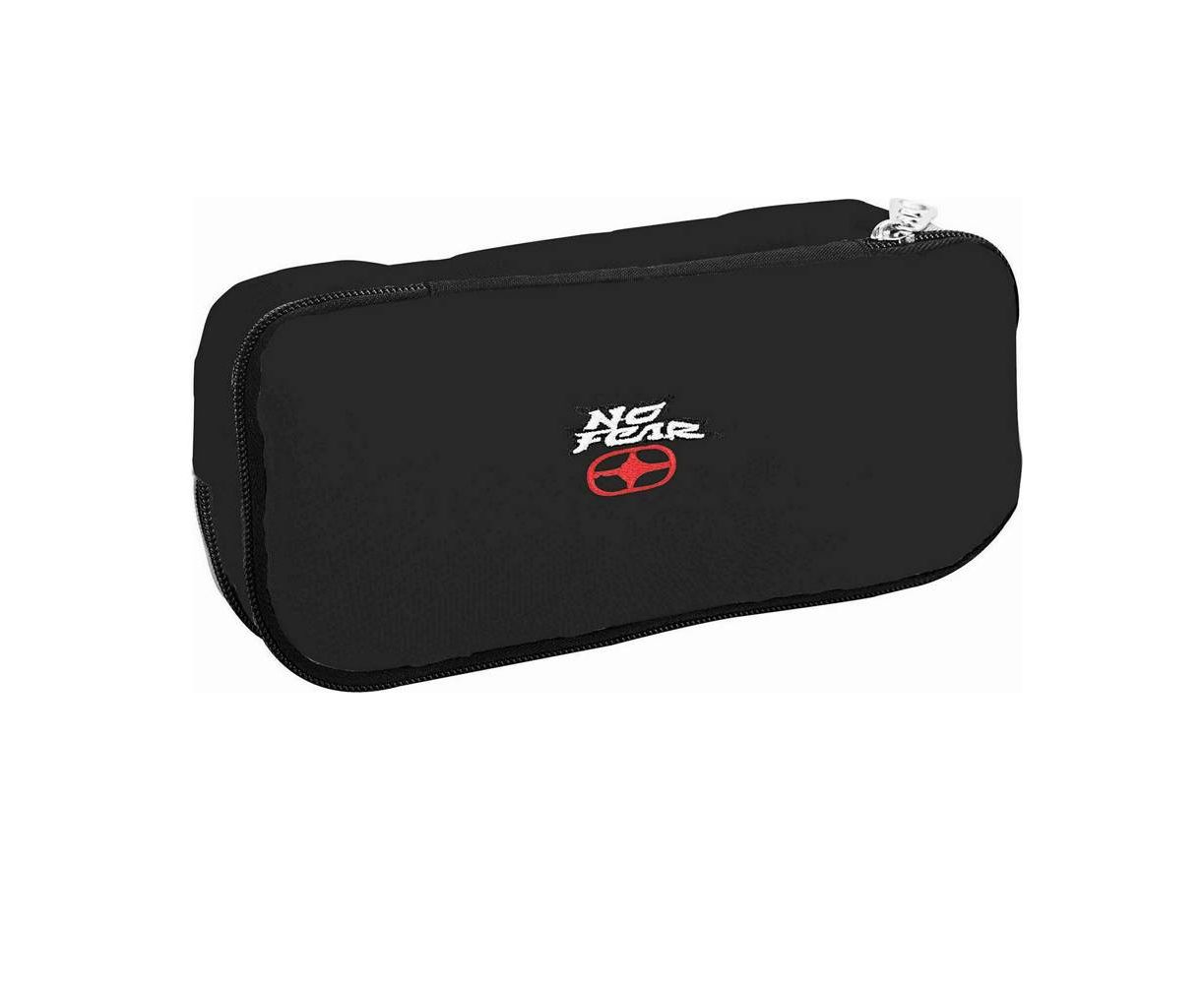 Οβάλ κασετίνα από ύφασμα της No Fear δύο θέσεων, με φερμουάρ, σε μαύρο χρώμα.