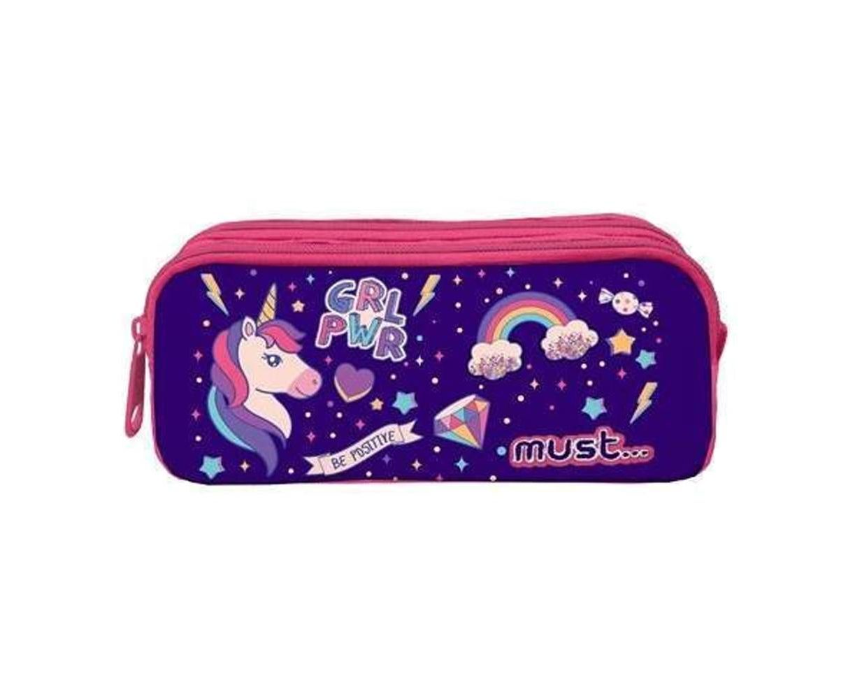Η κασετίνα MUST Be Positive διαθέτει δύο θέσεις, οι οποίες κλείνουν με ανθεκτικά φερμουάρ και προσφέρουν την κατάλληλη οργάνωση, ασφαλή αποθήκευση και εύκολη μεταφορά για όλη την απαραίτητη γραφική ύλη.