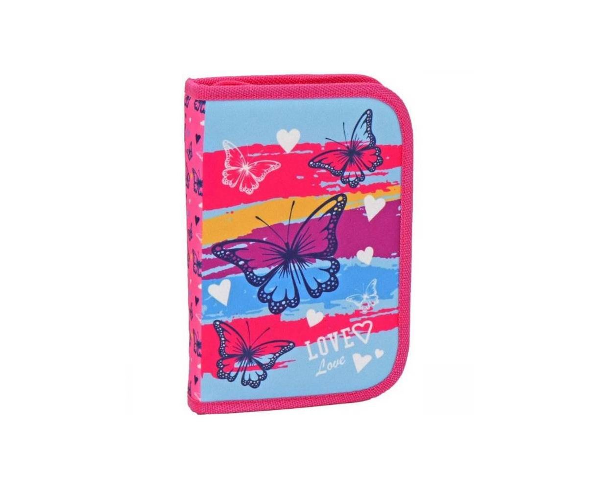 Τετράγωνη κασετίνα από ύφασμα της Must μιας θέσης, με φερμουάρ, πολύχρωμη. Έρχεται γεμάτη με γραφική ύλη.