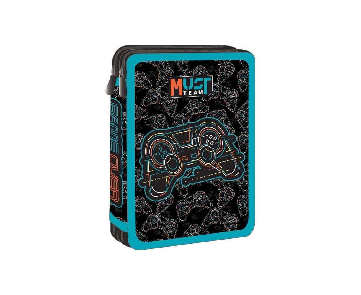 Κασετίνα Διπλή Γεμάτη Must Team Game Over, με όλη την απαραίτητη γραφική ύλη που χρειάζεται ο μαθητής.