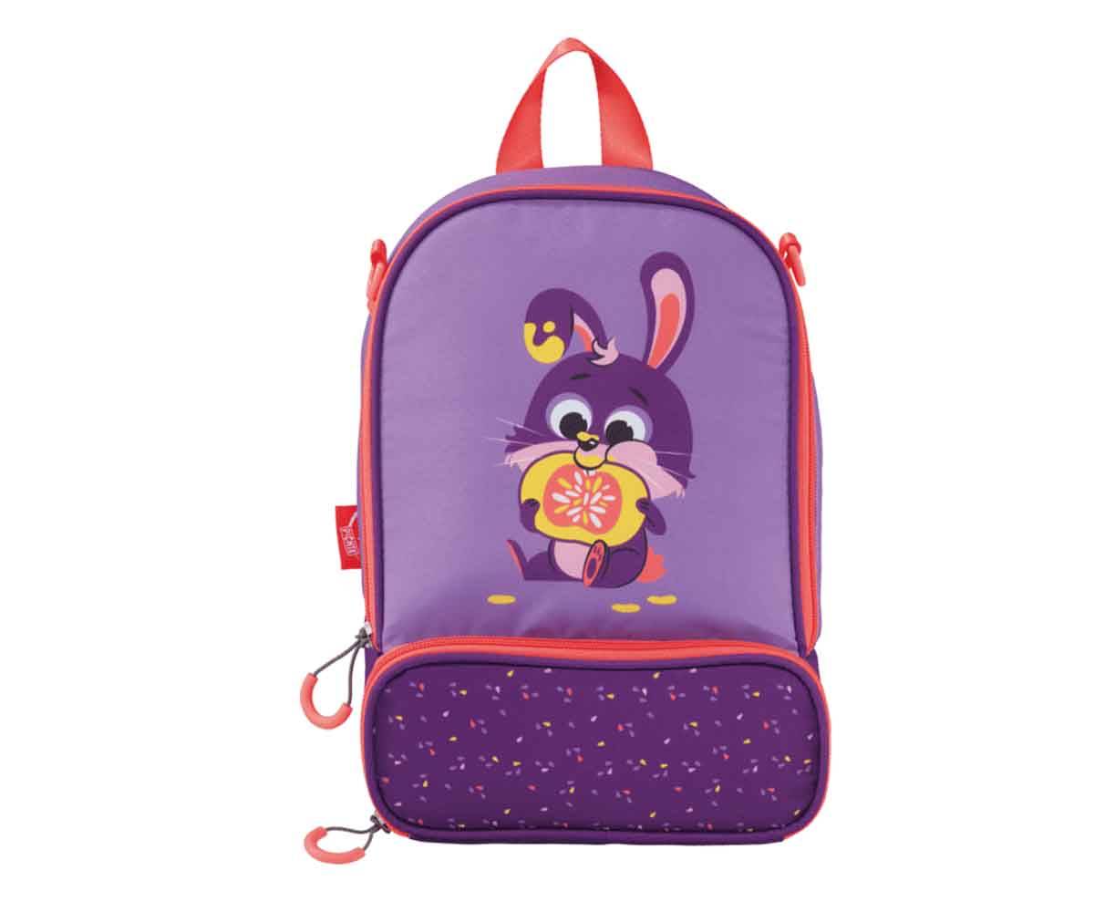 Η τσάντα Miniz Rabbit μπορεί να χρησιμοποιηθεί από παιδιά ηλικίας 3+ Εύκολο και έξυπνο σύστημα μετατροπής της τσάντας ώμου σε σακίδιο πλάτης. Η τσάντα περιλαμβάνει δύο τμήματα. Στο πάνω μέρος μπορείτε να τοποθετήσετε στο ειδικό λαστιχάκι το μπουκάλι με ασφάλεια καθώς και κάποια προσωπικά είδη του παιδιού και στο κάτω μέρος που είναι ισοθερμικό τοποθετείται το φαγητοδόχειο του παιδιού. Στο πίσω μέρος της τσάντας υπάρχει χώρος για να γράψετε το όνομα του παιδιού. Περιλαμβάνεται βιβλιαράκι με συνταγές υγιεινών γευμάτων για τα παιδιά μας.