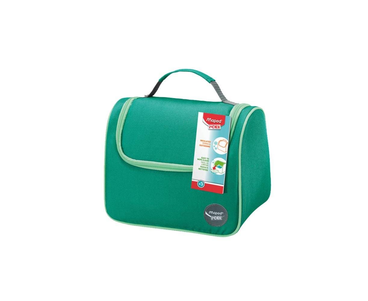 Σχολικό τσαντάκι φαγητού θήκη της Maped, σε πράσινο χρώμα. Κατασκευασμένο από ισοθερμικό υλικό, ώστε να μην επιτρέπει την ανταλλαγή θερμότητας με το περιβάλλον, και επομένως να διατηρεί σταθερή τη θερμοκρασία του φαγητού στο εσωτερικό του.