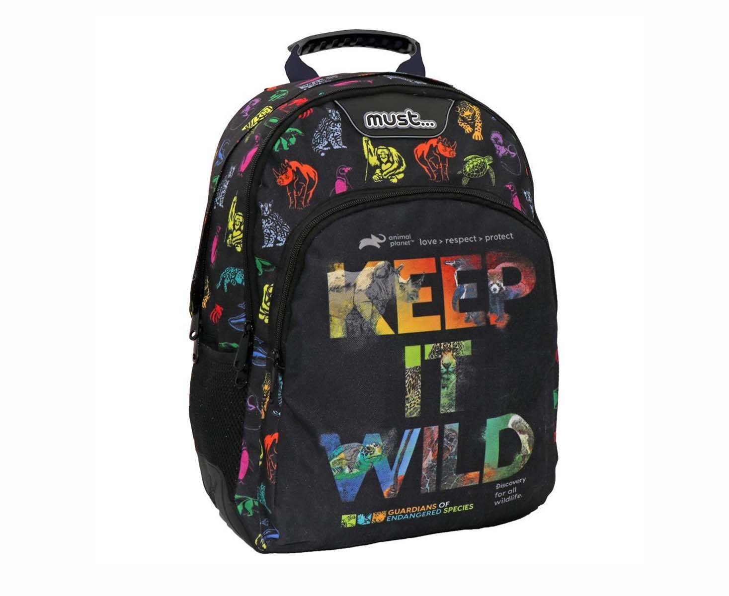 Σχολική Τσάντα Πλάτης Δημοτικού Animal Planet Keep It Wild Must με 3 θήκες ιδανική για την καθημερινή ασφαλή, άνετη και εύκολη μεταφορά όλων των απαραίτητων σχολικών ειδών.