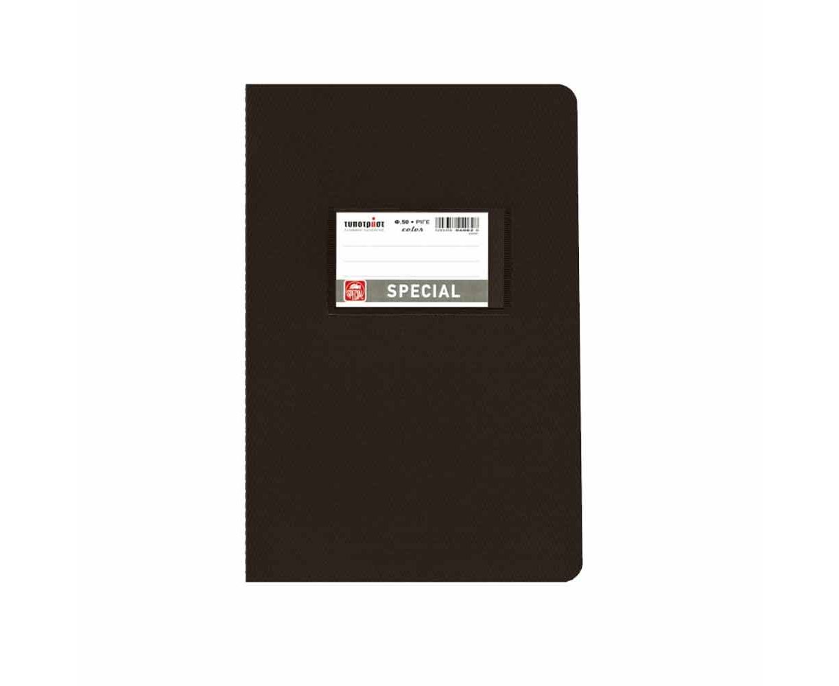 Τετράδιο καρφίτσα Special Color ριγέ μαύρο με ανάγλυφο εξώφυλλο. Αποτελείται απο χαρτί 70gsm και έχει στρογγυλεμένας γωνιές.