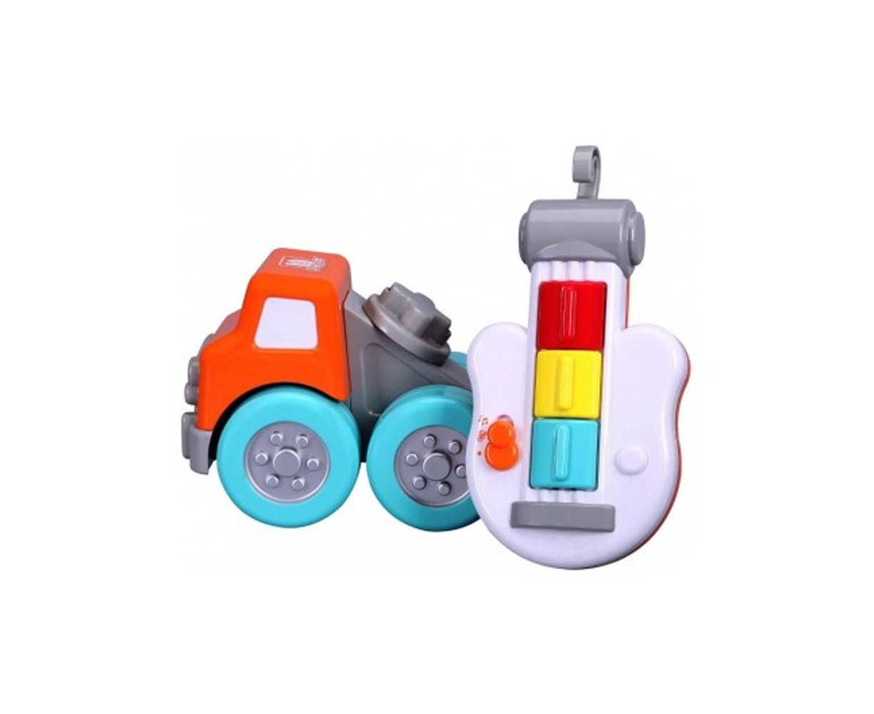 Φορτηγό γερανός με κιθάρα που παίζει μουσική για βρέφη και μικρά παιδιά, της σειράς Drive 'n Rock από την Burago. Βοηθάει το παιδί να αναπτύξει τις οπτικές και ακουστικές αισθήσεις του.