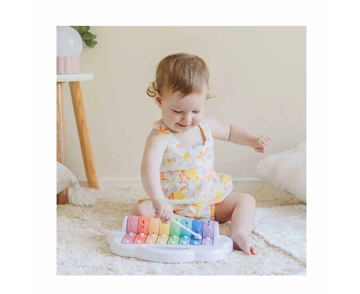 Με λαβή για εύκολη μεταφορά και χαριτωμένο σχέδιο σύννεφο-ουράνιο τόξο, αυτό το μουσικό παιχνίδι βοηθά τα μικρά να αναπτύξουν λεπτές κινητικές δεξιότητες, συντονισμό ματιού-χεριού και φυσικά… αγάπη για τις μελωδίες!
