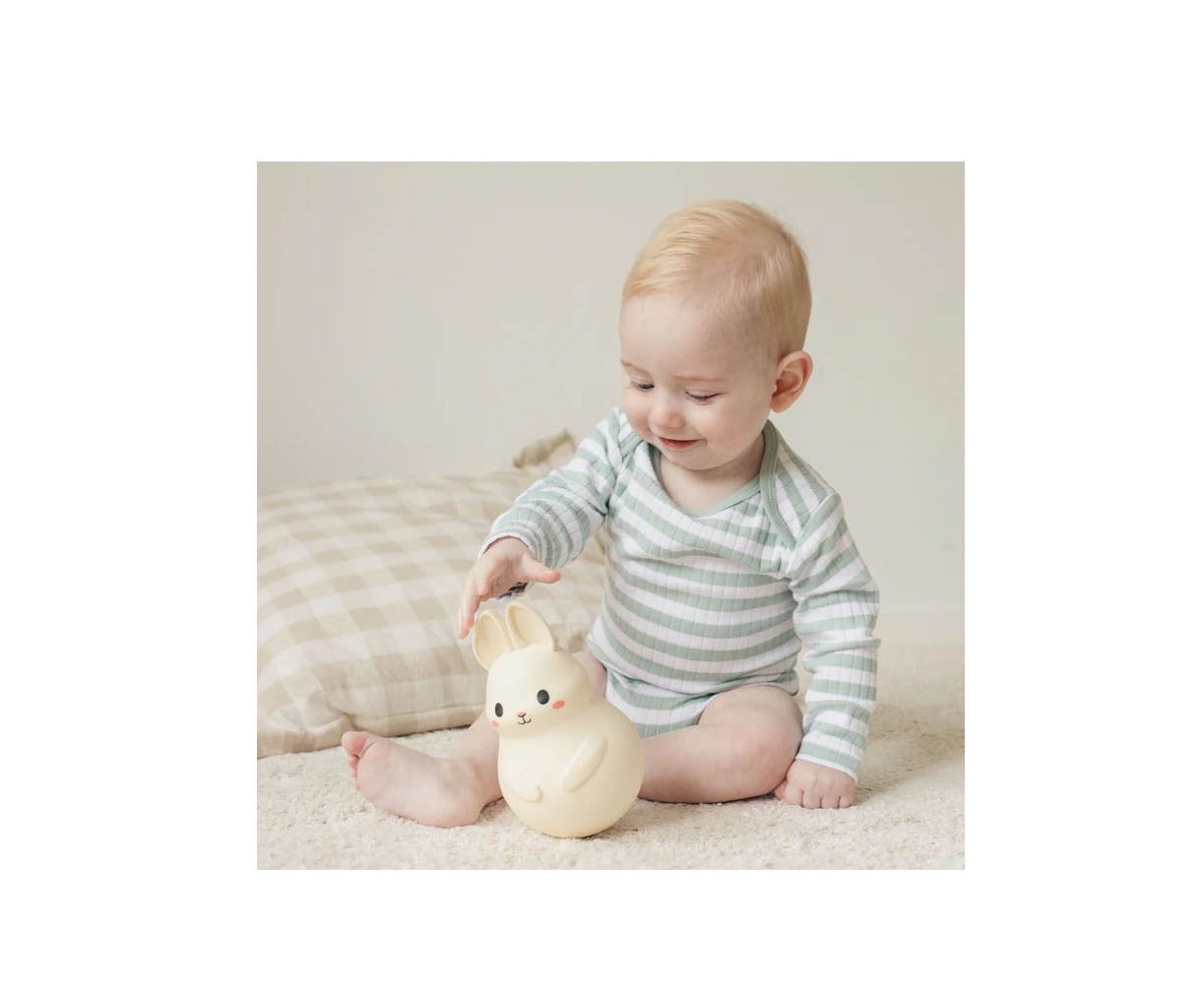 Το Roly Poly Κουνελάκι είναι ένα ασφαλές, διαδραστικό παιχνίδι σχεδιασμένο για να ενισχύει τη φυσική περιέργεια και τις κινητικές δεξιότητες των βρεφών από 3 μηνών και άνω.