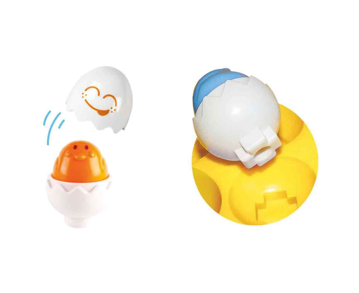 Εκπαιδευτικό διπλό παιχνίδι! 6 διαφορετικά αυγά με 6 αστείες εκφράσεις προσώπου. Το νήπιο ανακαλύπτει και ταιριάζει χρώματα και σχήματα. Είναι ένα παιχνίδι μάθησης που ενθαρρύνει την αναγνώριση χρωμάτων και σχημάτων. Κάθε αυγό έχει το δικό του διαφορετικό κέλυφος που το νήπιο προσπαθεί να το ταιριάξει. Όταν πιέζει το αυγό τότε ένα χαρούμενο cheep-cheep ακούγεται. Το παιχνίδι αυτό παίζεται με πολλούς τρόπους για να μην το βαριέται ποτέ!