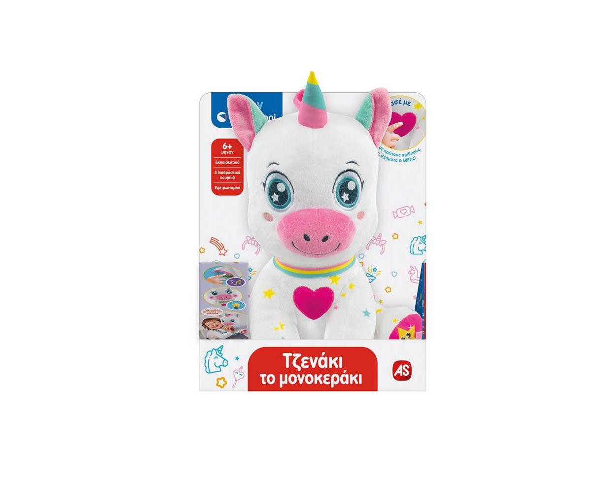 Το Τζενάκι το Μονοκεράκι είναι η πιο γλυκιά παρεούλα για ασταμάτητες αγκαλιές! Μαλακό λούτρινο με 5 διαδραστικά κουμπιά για να μάθει το παιδί τους πρώτους αριθμούς, τα πρώτα γράμματα, τα σχήματα και τα χρώματα. Το Τζενάκι το Μονοκεράκι βοηθάει το παιδί να αναγνωρίσει πολλές νέες λέξεις χάρη στα χαρούμενα τραγουδάκια και τα αστεία ποιηματάκια.