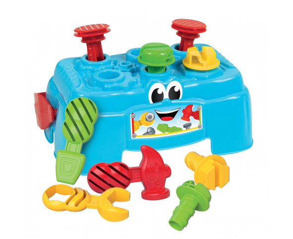 Με 3 εργαλεία και 6 αξεσουάρ που διασκεδάζουν το παιδί, εξασκούν το συντονισμό ματιών - χεριών, τη λογική και τις χειρωνακτικές του δεξιότητες. Ο πάγκος μετατρέπεται σε δοχείο για αποθήκευση εργαλείων και αξεσουάρ, με βολική λαβή για εύκολη μετακίνηση. Το παιδί ενισχύει την απτική και την οπτική του αντίληψη.