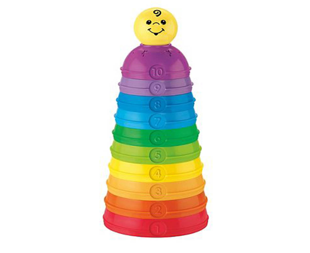 Δέκα κύπελλα που το μωρό μπορεί να παίξει, να στοιβάξει ή να κάνει μπαλίτσες και να μάθει τα χρώματα, τα μεγέθη και τους αριθμούς. Κυπελλάκια που στοιβάζονται ανά μέγεθος ή που ενώνονται και γίνονται μπαλίτσες. Μαζί και μία μπαλίτσα-κουδουνίστρα. Οι συνδυασμοί δε σταματάνε ποτέ και το παιδί πειραματίζεται με αυτούς! Μπορείτε να αξιοποιήσετε το παιχνίδι αυτό όπως και άλλα που στοιβάζονται και χρησιμοποιώντας περιγραφές, να φέρετε το παιδί σε μια πρώτη επαφή με απλές λέξεις όπως "πάνω ή κάτω", "μεγάλο ή μικρό". Με τον τρόπο αυτό, το παιδί αρχίζει σιγά σιγά να αντιλαμβάνεται την έννοια του χώρου.