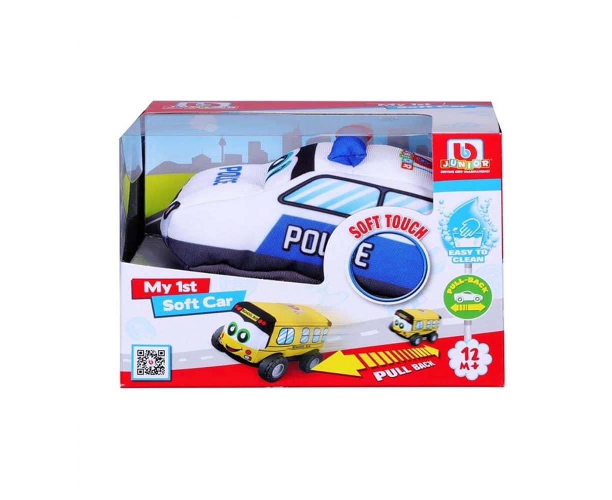 Το "My First Police Car" είναι κάτι πολύ ιδιαίτερο. Το αμάξωμα του αυτοκινήτου είναι κατασκευασμένο από εξαιρετικά μαλακό βελούδινο υλικό. Το βελούδινο σώμα μπορεί εύκολα να αποσπαστεί και να καθαριστεί χρησιμοποιώντας ένα σύστημα Velcro. Το κόκκινο speedster έχει επίσης ενσωματωμένη έλξη στους πίσω τροχούς.