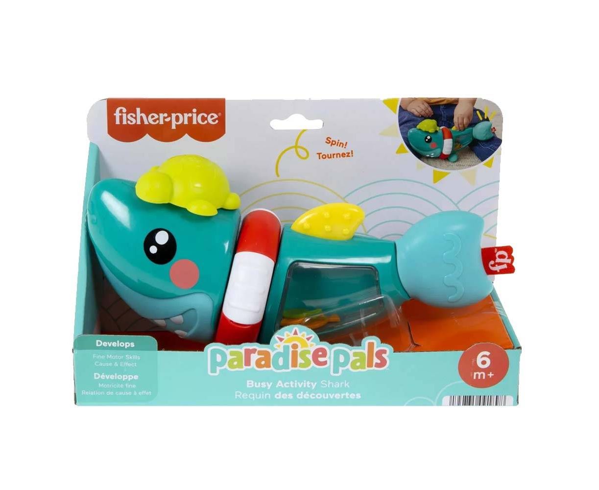 Το παιχνίδι γίνεται πολύ διασκεδαστικό με το Καρχαριάκι της Fisher-Price. Αυτό το φιλικό καρχαριάκι διαθέτει διασκεδαστικές δραστηριότητες για να εξερευνήσει το μωρό, όπως χάντρες-ψαράκια για να τις κουνάει και να ακούει ήχους. Το παιχνίδι βοηθάει το μωρό σας να αναπτύξει τον συντονισμό όρασης-κίνησης χεριών, την επιδεξιότητα και τις αισθήσεις του. Παιχνίδι Δραστηριοτήτων με Καρχαριάκι Γεμάτο δραστηριότητες για τα μικρά χεράκια! Κουνήστε το καρχαριάκι για ήχους κουδουνίστρας και την ουρά του για να κάνει κλικ, στριφογυρίστε το σωσίβιο για ήχους και σύρετε το χελωνάκι πάνω-κάτω. Έντονα χρώματα, ήχοι και διαφορετικές υφές που ενισχύουν την όραση, την ακοή και την αφή του μωρού Ενισχύει τη λεπτή κινητικότητα των μωρών και μαθαίνει την έννοια της δράσης-αντίδρασης. Ιδανικό για παιχνίδι στη βόλτα για μωρά 6 μηνών και άνω