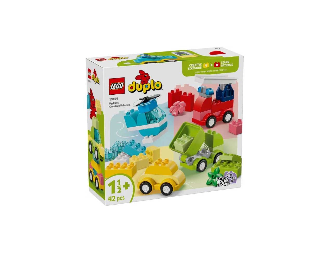 Δώστε στα νήπια τη δυνατότητα να εκφράσουν την δημιουργικότητά τους με το παιχνίδι LEGO Duplo Creative Vehicles (10474). Αυτό το παιχνίδι μάθησης για κορίτσια και αγόρια ηλικίας 18 μηνών και άνω περιλαμβάνει πολλά τουβλάκια, κομμάτια και κινούμενες λειτουργίες που θα ενεργοποιήσουν τη δημιουργικότητα των νηπίων! Πρώτα, τα νήπια κατασκευάζουν τα βασικά μοντέλα όπως ένα LEGO DUPLO ελικόπτερο με περιστρεφόμενο έλικα, ανατρεπόμενο φορτηγό με ανακλινόμενη καρότσα, πυροσβεστικό φορτηγό με αρθρωτή σκάλα και ένα μικρό οικογενειακό αυτοκίνητο. Στη συνέχεια, χρησιμοποιούν λεπτές κινητικές δεξιότητες και συντονισμό χεριών-ματιών για να αποσυνδέσουν τα τουβλάκια από αυτά τα οχήματα και να προσθέσουν δημιουργικότητα και επιπλέον τουβλάκια για να φτιάξουν εντελώς νέες δημιουργίες. Από αστυνομικά αυτοκίνητα μέχρι υπερμεγέθη φορτηγά ή διώροφα λεωφορεία, τα νήπια αφήνουν ελεύθερη τη δημιουργικότητά τους, συνδυάζοντας τα LEGO DUPLO τουβλάκια με νέους, εκπληκτικούς τρόπους. Τα αναπτυξιακά παιχνίδια LEGO DUPLO διαθέτουν εύχρηστα τουβλάκια και συναρπαστικά χαρακτηριστικά που βοηθούν τα νήπια να κάνουν τα πρώτα τους βήματα με αυτοπεποίθηση στο ταξίδι τους στον κόσμο των LEGO κατασκευών. Το σετ περιέχει 42 τεμάχια.