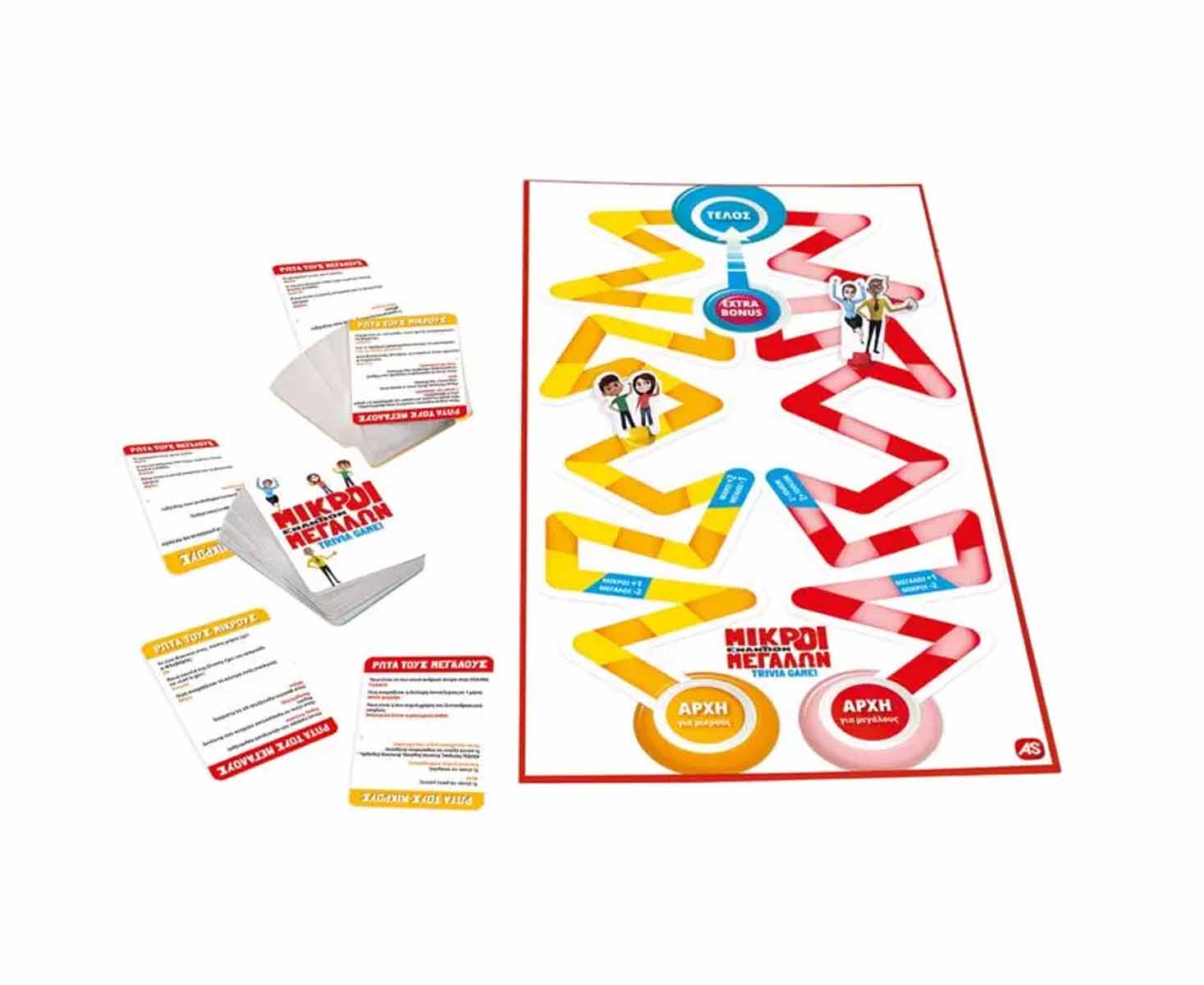 Ποιος θα τα καταφέρει σε αυτή τη μεγάλη οικογενειακή αναμέτρηση; Οι μικροί θα ενώσουν τις δυνάμεις τους για να κερδίσουν τους μεγάλους, στο πιο διασκεδαστικό παιχνίδι γνώσεων! Παιδιά, σε ποια χώρα εφευρέθηκαν τα κρουασάν, που τόσο πολύ σας αρέσουν; Γονείς, πώς ονομάζονται οι 2 αδερφές στην ταινία Frozen; 660 ερωτήσεις, για μικρούς και για μεγάλους! Προσέξτε! Tα ειδικά πεδία στο ταμπλό μπορεί να ανατρέψουν το παιχνίδι! Φτάστε πρώτοι στον τερματισμό και κερδίστε! Το παιχνίδι Μικροί εναντίον Μεγάλοι φέρνει τα παιδιά και τους γονείς πιο κοντά από ποτέ, προσφέροντας απίστευτες στιγμές γέλιου και διασκέδασης!