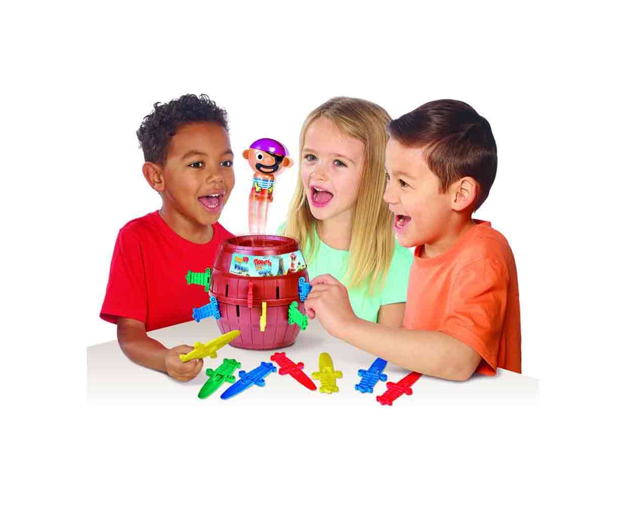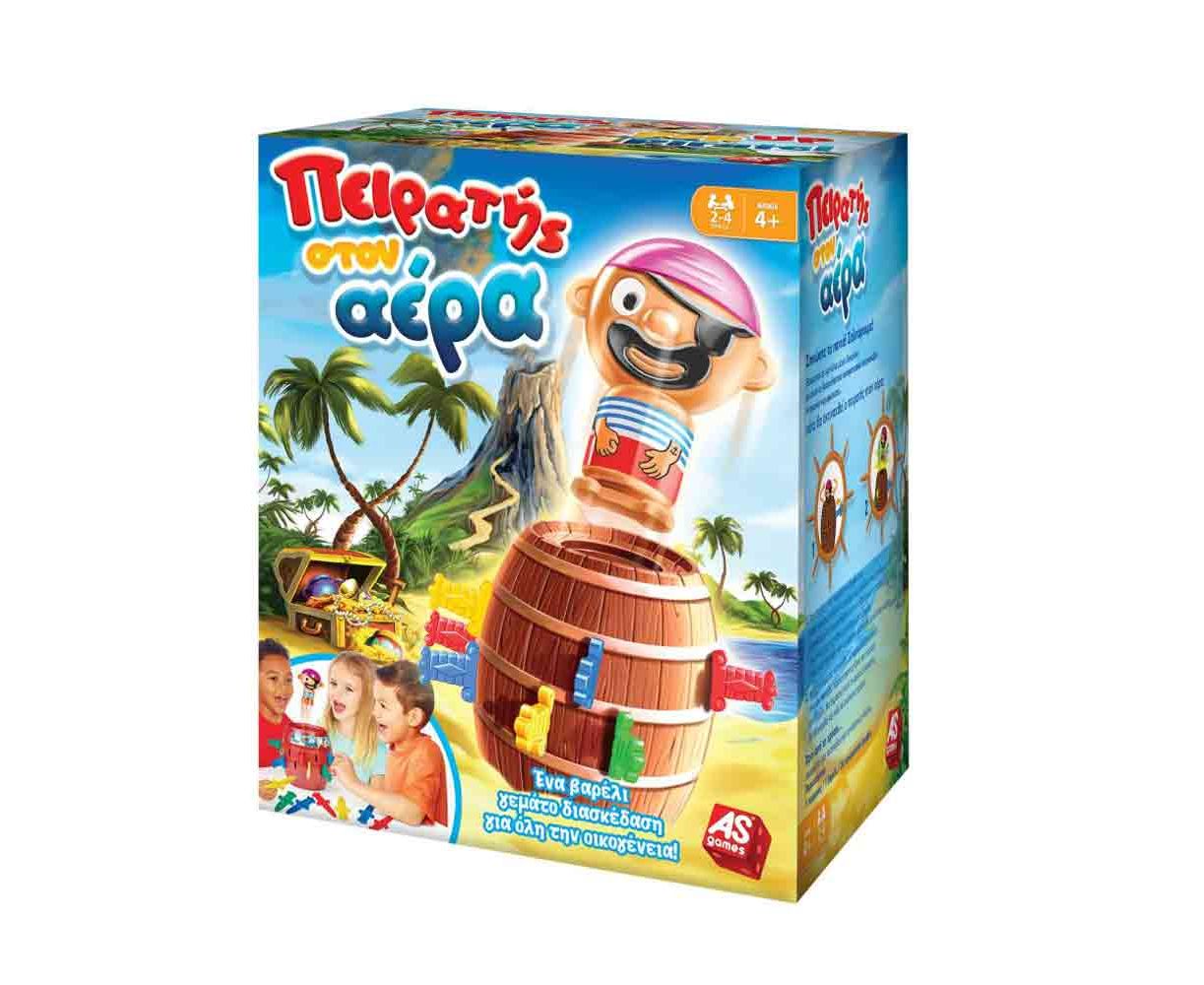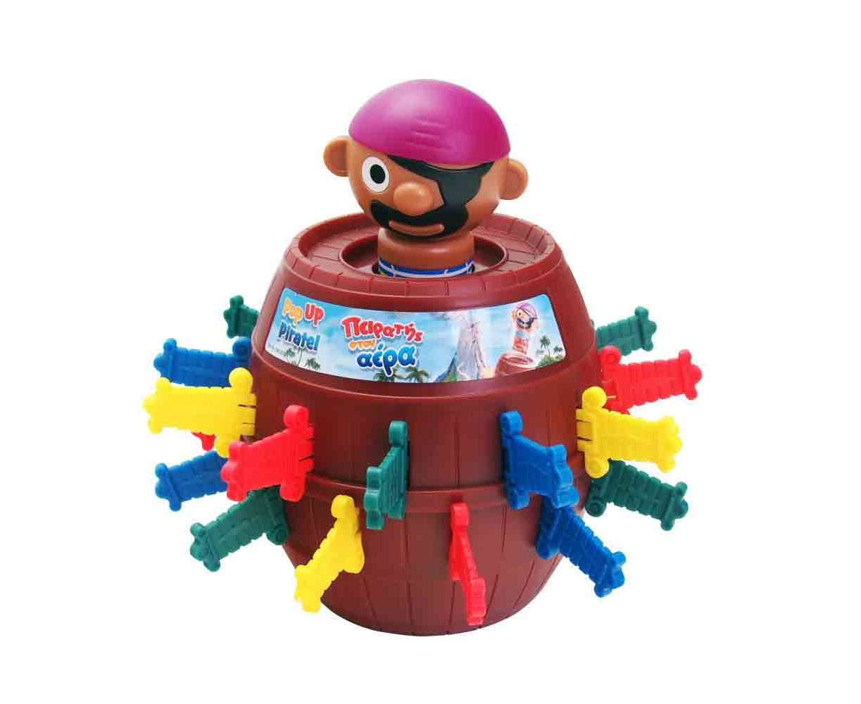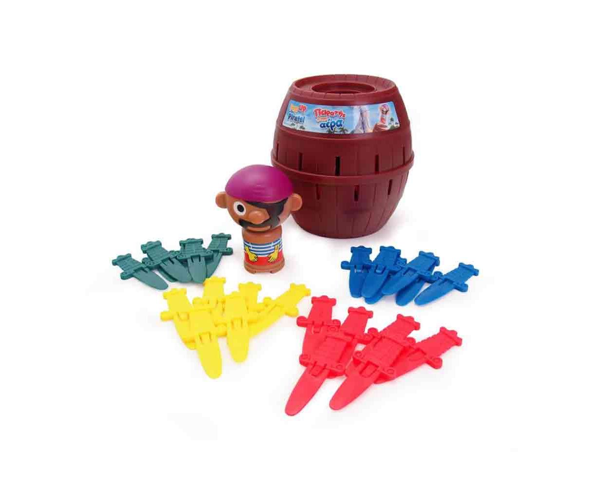 Ο πειρατής ψάχνει τον θησαυρό και εγκλωβίζεται κατά λάθος στο βαρέλι! Κάθε παίκτης με τη σειρά τοποθετεί ένα σπαθί στο βαρέλι. Προσέξτε! Μία λάθος κίνηση μπορεί να κάνει τον πειρατή να πεταχτεί στον αέρα!
