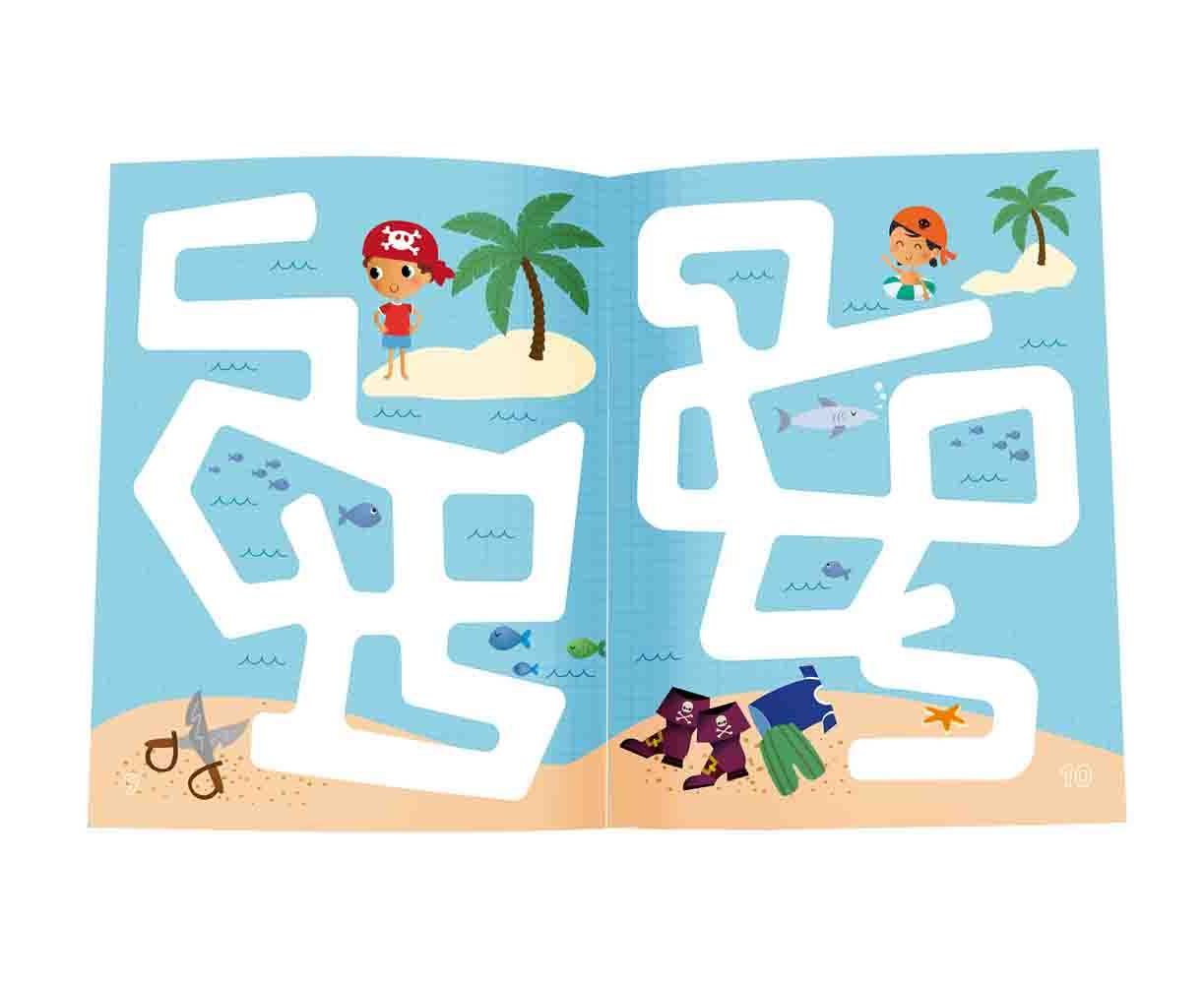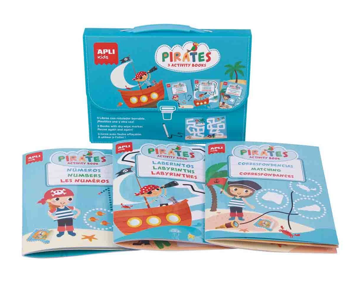 Βιβλία δραστηριοτήτων με θέμα Πειρατές και μαρκαδοράκι που σβήνει για να γράφεις ξανά και ξανά απολαμβάνοντας χωρίς τελειωμό τις απίθανες δραστηριότητες των βιβλίων! Μάθε αριθμούς και λύσε λαβύρινθους με τη συντροφιά των πειρατών!