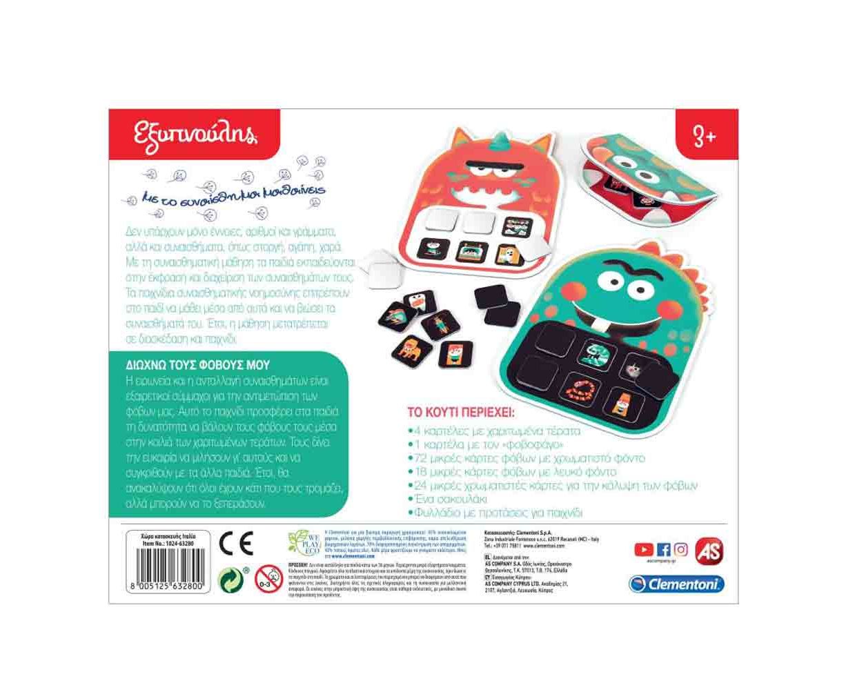 Αυτό το παιχνίδι προσφέρει στα παιδιά τη δυνατότητα να βάλουν τους φόβους τους μέσα στην κοιλιά των χαριτωμένων «φοβοφάγων» τεράτων. Τους δίνει την ευκαιρία να μιλήσουν γι’ αυτούς και να συγκριθούν με άλλα παιδιά. Έτσι, θα ανακαλύψουν ότι όλοι έχουν κάτι που τους τρομάζει, αλλά μπορούν να το ξεπεράσουν.