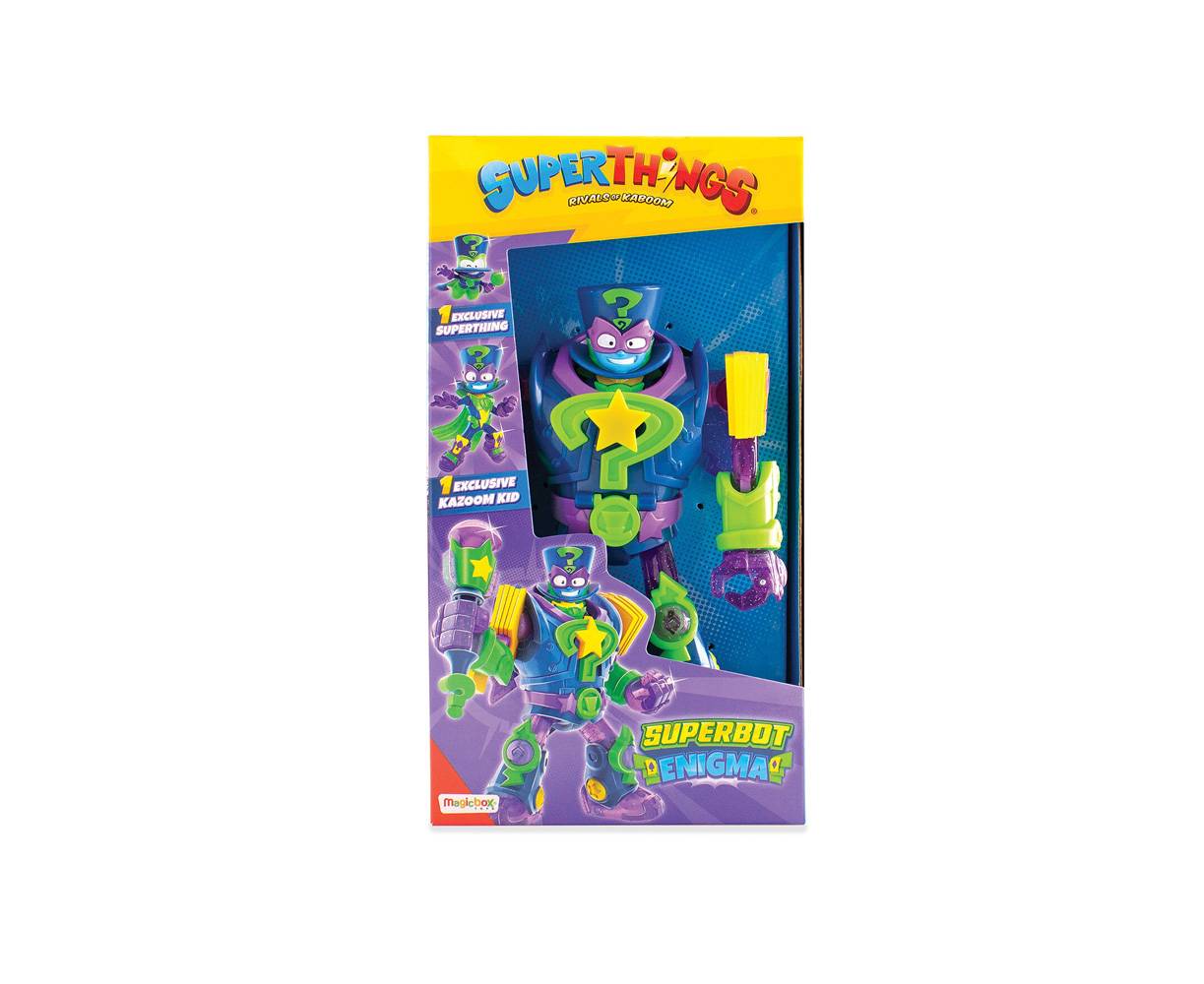 Ανακάλυψε το νέο Superbot Enigma. Ο αγαπημένος σου ήρωας γίνεται ρομπότ με αρθρωτά χέρια, πόδια και πτυσσόμενα φτερά. Πυροβόλησε τους κακούς με το μοναδικό του αξεσουάρ!