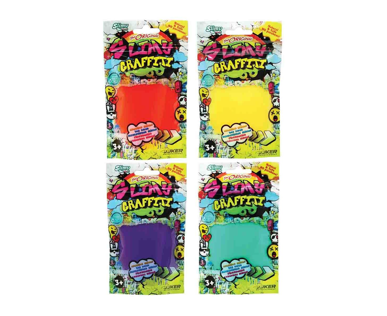 Χλαπάτσα Graffiti! Η αγαπημένη Original χλαπάτσα τώρα σε 4 νέα, cool graffiti χρώματα και σε σακουλάκι! Παίξε με τη ζουληχτή χλαπάτσα slimy graffiti. Απίστευτη αίσθηση στην αφή που θα σε κάνει να μην την αφήνεις από τα χέρια σου! Αποθήκευσε τη στο επανακλειόμενο σακουλάκι μόλις τελειώσεις το παιχνίδι σου. - Ελβετική φόρμουλα που καθιστά το προϊόν φυσικό και ασφαλές - Χωρίς parabens - Δερματολογικά ελεγμένο - Διαθέσιμα χρώματα: - Κοραλλί - Γαλαζοπράσινο - Κίτρινο - Μωβ Slimy Graffiti!