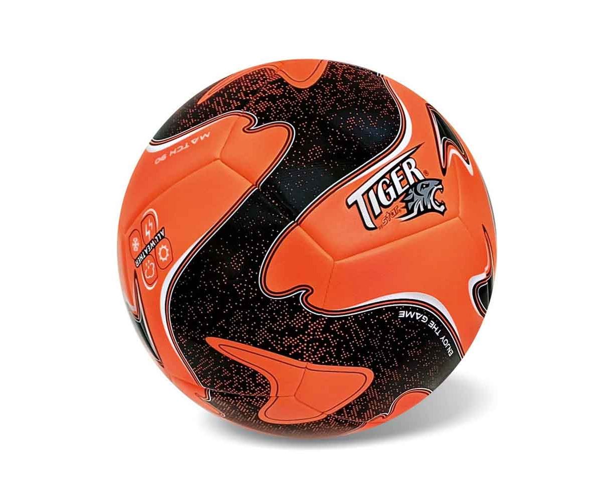 Μπάλα ποδοσφαίρου μεγέθους 5 με έντονα φλουο χρώματα πορτοκαλί και μαύρο, κατασκευασμένη για αντοχή και άνεση στο παιχνίδι. Ιδανική για προπονήσεις, παιχνίδι στην αυλή ή στον δρόμο. Η φωτεινή χρωματική της παλέτα ενισχύει την ορατότητα κατά το παιχνίδι.