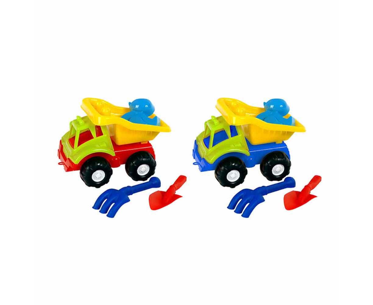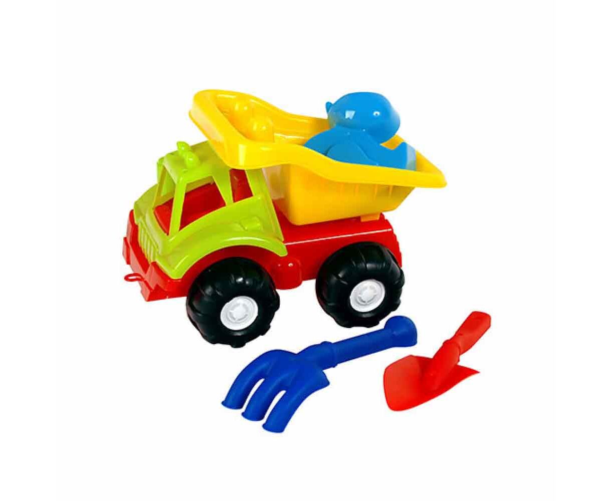 Πλαστικό φορτηγό με φτυαράκι, τσουγκράνα και 1 πλαστικό καλούπι, για ατελείωτη διασκέδαση στη παραλία.