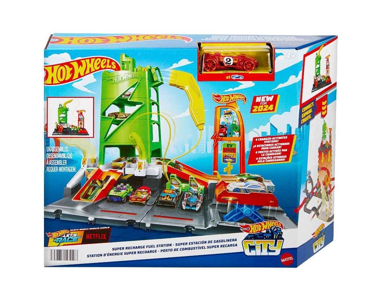 Ετοιμάστε τα αυτοκινητάκια σας και επισκεφθείτε τον Σταθμό Φόρτισης Hot Wheels για αμέτρητες διασκεδαστικές ιστορίες! Αυτό το διαδραστικό σετ παιχνιδιού διαθέτει μια επανατοποθετούμενη λαβή φόρτισης, που τα παιδιά μπορούν να τοποθετήσουν σε καθορισμένα σημεία για να ενεργοποιήσουν διασκεδαστικές λειτουργίες, όπως αλλαγές πινακίδων, ανυψωτικά αυτοκινήτων και εκτοξευτές. Μπορείτε να παρκάρετε έως 10 αυτοκινητάκια κλίμακας 1:64 για ακόμα περισσότερες ιστορίες ή αποθήκευση. Περιλαμβάνεται ένα αυτοκινητάκι Hot Wheels.